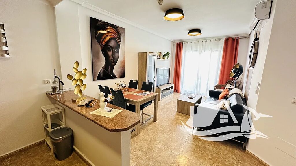 Dispozice tohoto nádherného penthousu v Cabo Roig je navržena tak, aby vám přinášela každý den radost a pohodlí – jako kdyby dovolená nikdy neskončila. Po vstupu vás přivítá světlý obývací pokoj, kde přes velká francouzská okna proudí ranní slunce a odkud se otevírá přímý vstup na hlavní terasu s dechberoucím výhledem na moře – ideální místo pro ranní kávu i večerní víno. Kuchyň je plně vybavená a otevřená do obývací části, takže vám umožní vařit a zároveň zůstat v kontaktu s rodinou nebo přáteli. Obě ložnice mají vestavěné skříně a útulnou atmosféru, jako stvořenou pro klidný spánek po dni u moře. Jedna z nich má navíc vlastní menší terasu – váš soukromý koutek na čtení nebo relax. Třešničkou na dortu je velké střešní solárium, odkud se vám otevře panoramatický výhled na moře, pobřeží i španělské slunce – místo, kde se každý den stává výjimečným.