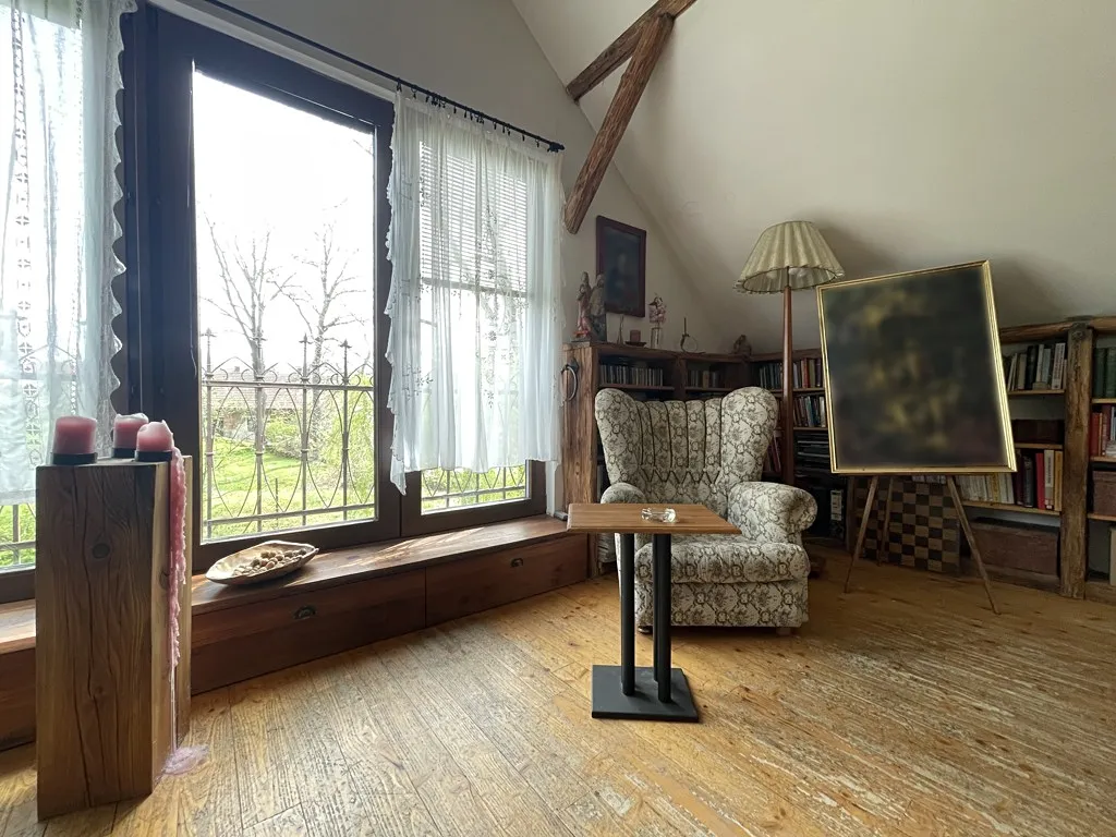 Na pozemku jsou další přístavky využívané jako ateliéry, dílny nebo sklad dřeva