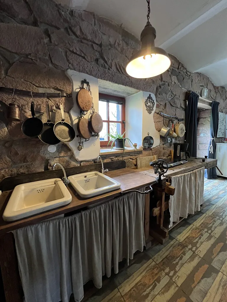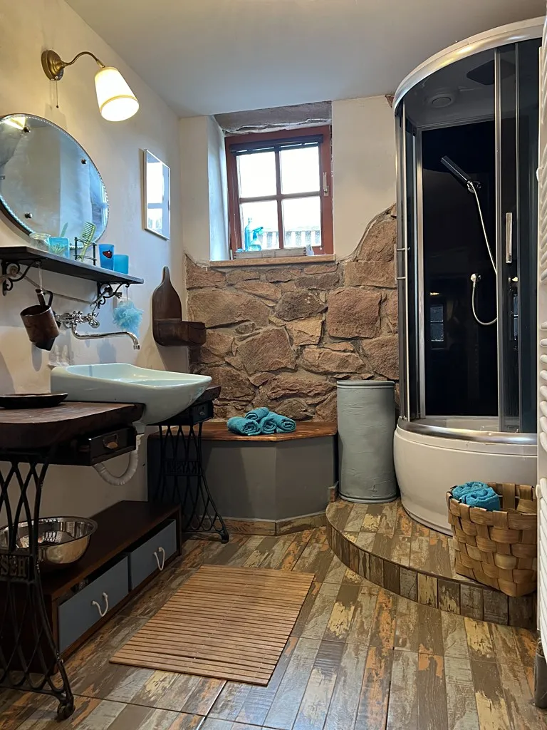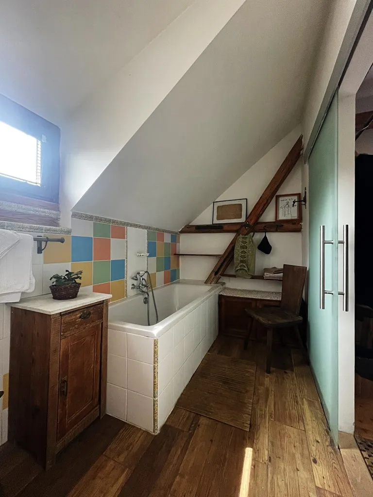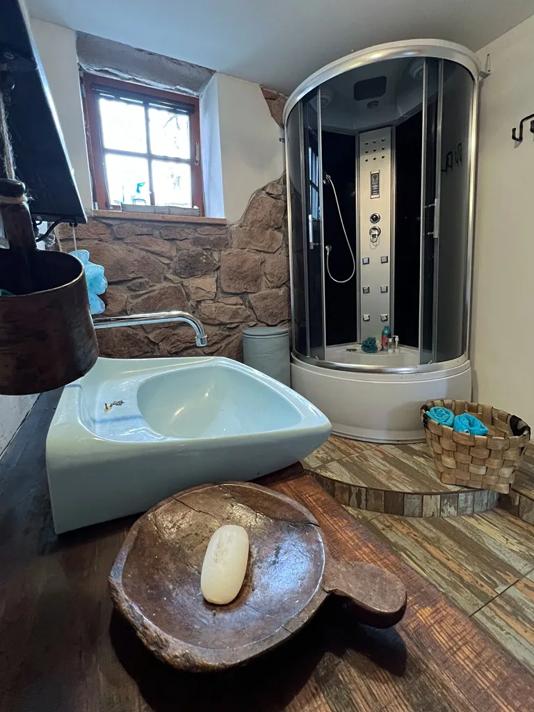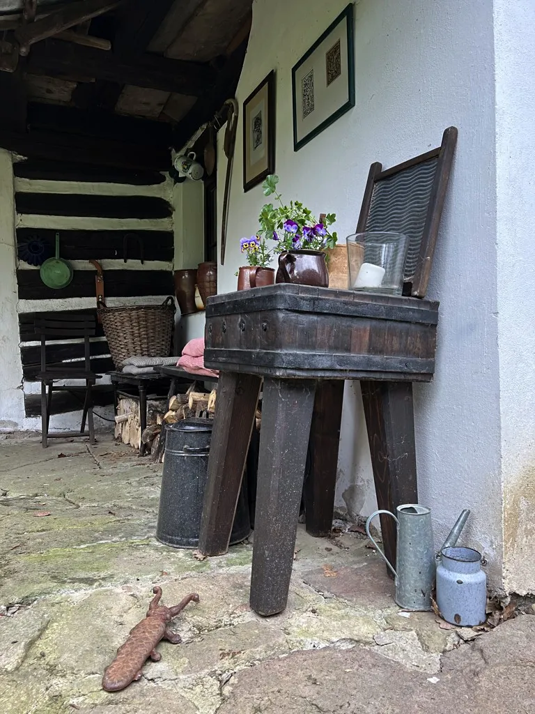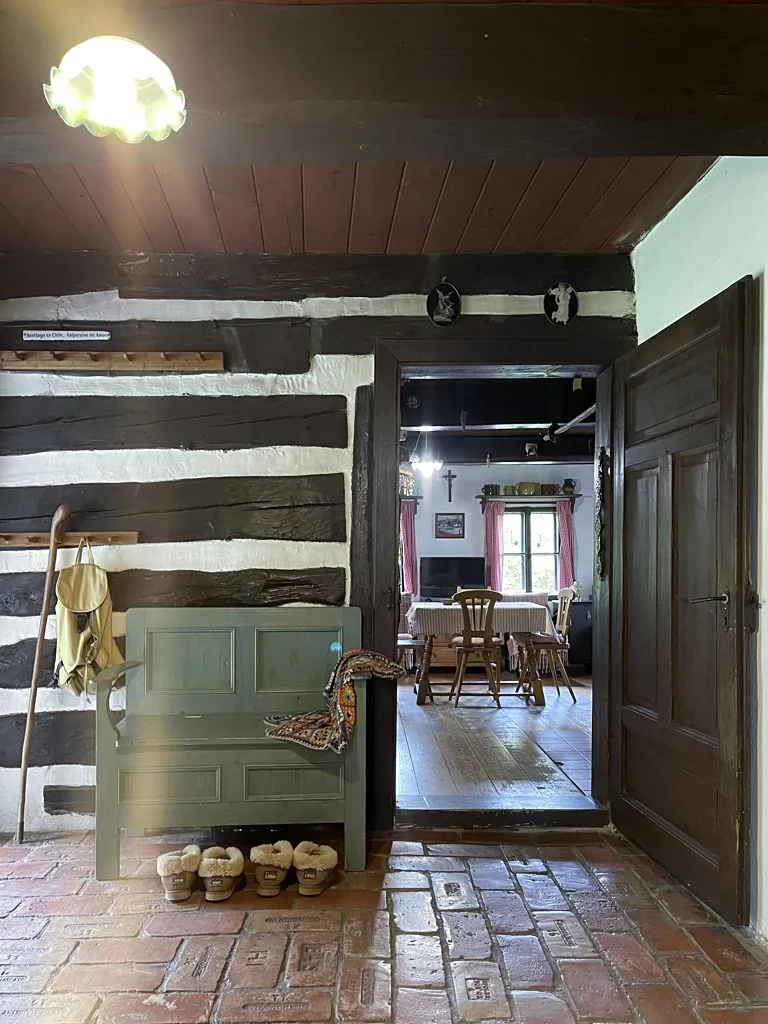 Roubená chalupa: Romantické bydlení s atmosférou našich předků. Chalupa s potůčkem je využívána k pronájmům turistům a poskytuje stabilní příjmy po celý rok. Proto je krom klasických kamen vybavena i ústředním topením s elektrokotlem a moderní koupelnou s automatickou pračkou.