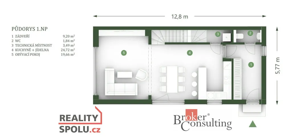 • Otevřená kuchyně s jídelnou (24,72 m²)