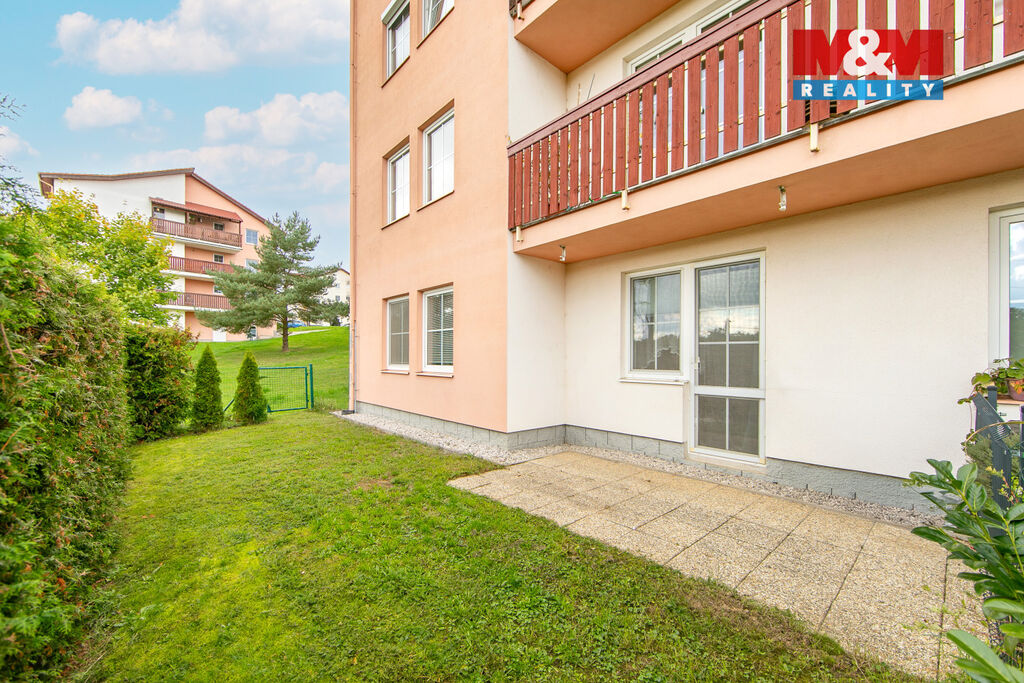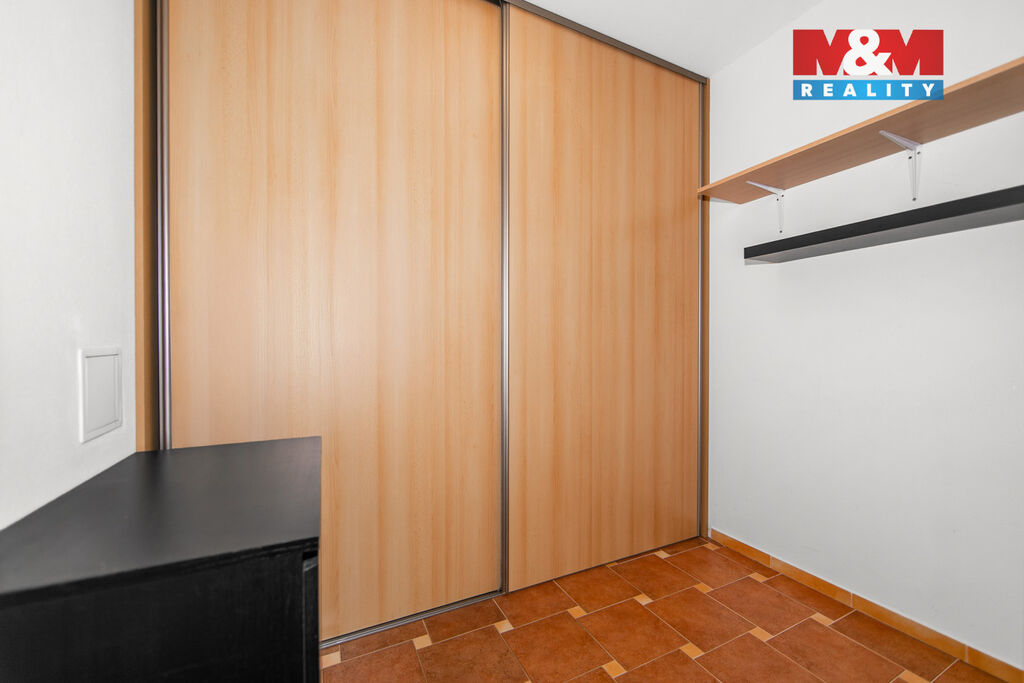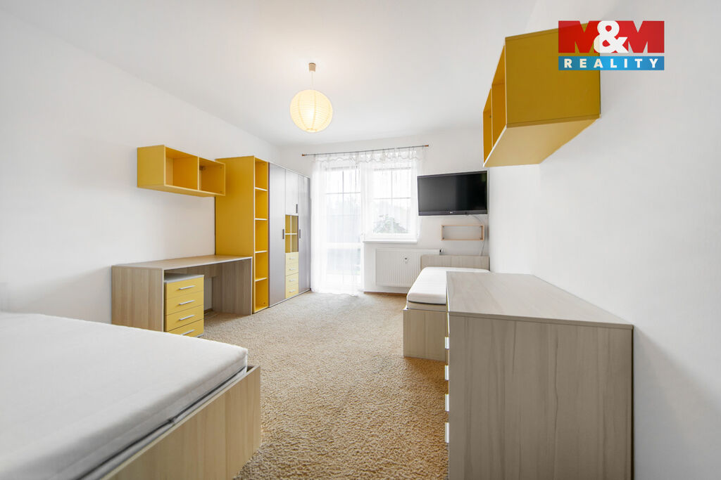 Byt se nachází v přízemí cihlového domu s předzahrádkou, sklepem. Předzahrádka náleží pouze k bytu o velikosti 48 m² . Byt částečně vybaven, kuchyňská linka - jídelní stůl, pracovní stůl, vestavěné skříně v předsíni, šatna, dětský pokoj - skříně, postele, psací stoly, TV, ložnice - postel, vestavěné skříně.