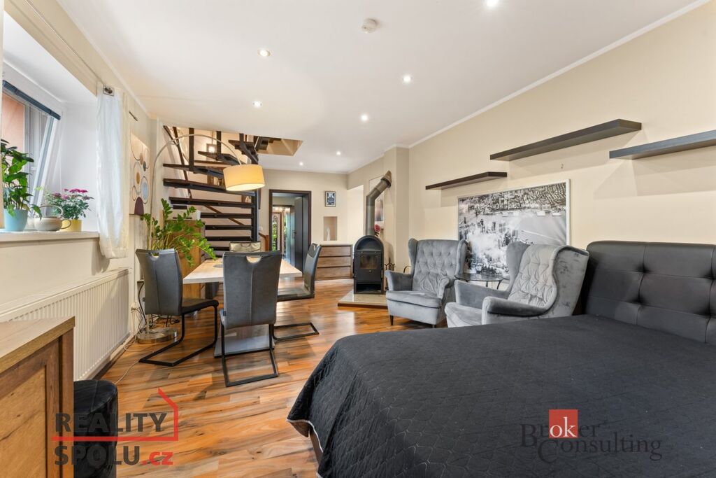 Za domem se nachází menší zahrada, ideální pro relaxaci, grilování nebo klidné posezení s rodinou a přáteli. Lokalita domu je výjimečná svou kombinací klidného prostředí v blízkosti lesa a zároveň výborné občanské vybavenosti – v obci najdete školu, školku, lékaře, obchod i poštu. Louny jsou vzdálené 12 kilometrů a cesta do Prahy trvá zhruba 40 minut.