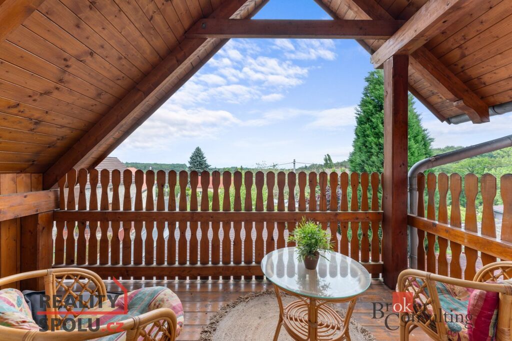 Dům s dispozicí 3+1 poskytuje praktické rodinné zázemí. V přízemí se nachází předsíň, moderní koupelna, kuchyň a prostorný obývací pokoj, který se stane srdcem celého domova. Podkroví nabízí dva útulné pokoje, každý s vlastní lodžií, dále koupelnu a chodbu s vestavěnými úložnými prostory. Jedinečným bonusem je pokoj orientovaný na východ, odkud se otevírá nádherný výhled na České středohoří.