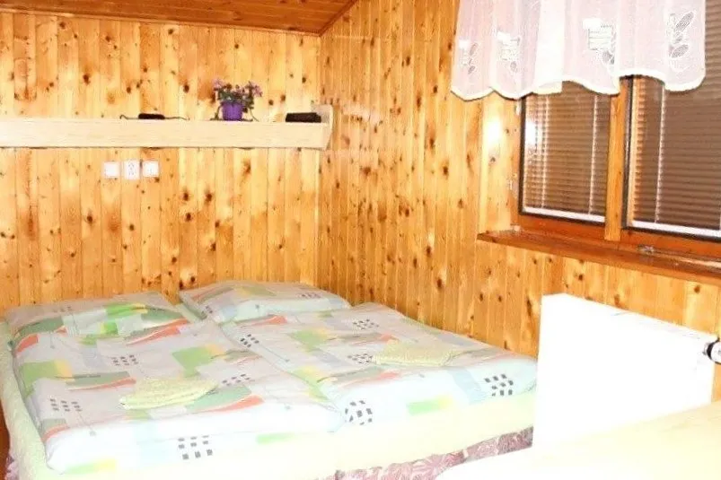 Součástí objektu je pět pokojů, každý s vlastním sociálním zařízením (sprcha/vana, umyvadlo, WC), což poskytuje dostatek soukromí i pro větší rodinu či hosty. K dispozici je také venkovní zastřešené posezení, kůlna, původní chatky a bufet.