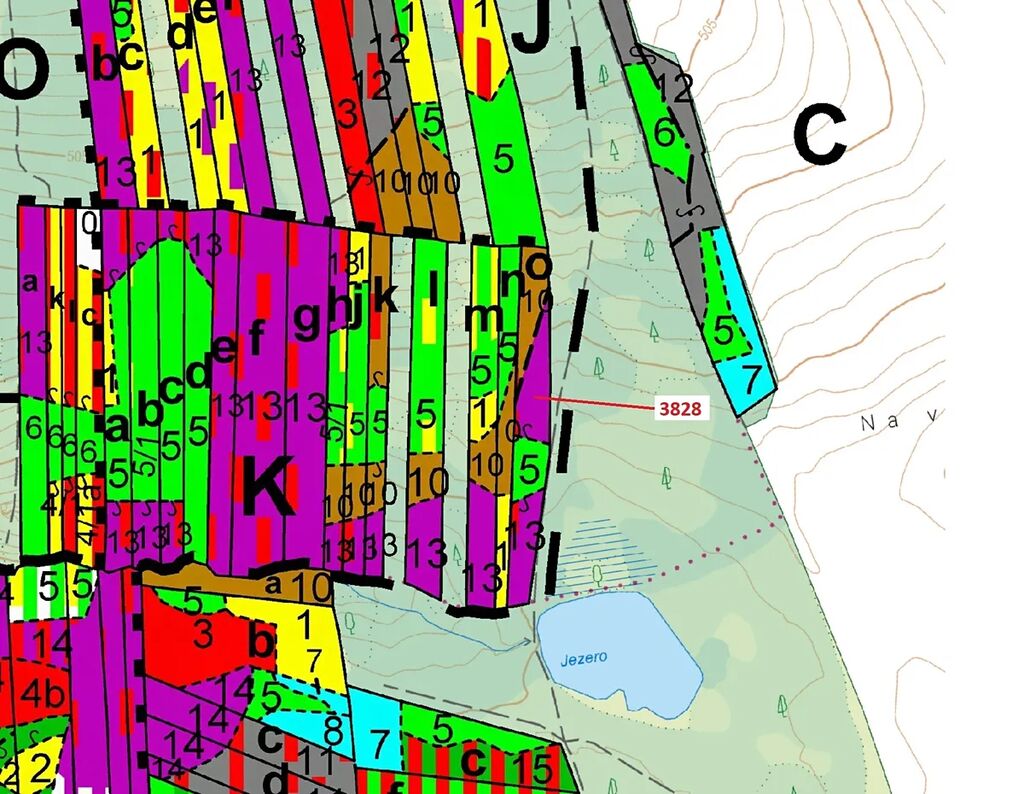 Lesní pozemek o výměře 4 949 m2, parcelní číslo 3828, podíl 1/1, katastrální území Borovany, obec Borovany, obec s rozšířenou působností Trhové Sviny, okres České Budějovice, Jihočeský kraj. Po těžbě.
