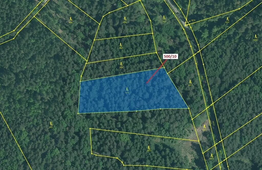 Lesní pozemek o výměře 5 755 m2, parcelní číslo 500/10, podíl 1/1, katastrální území Jílovice u Trhových Svinů, obec Jílovice, obec s rozšířenou působností Trhové Sviny, okres České Budějovice, Jihočeský kraj. Po těžbě.