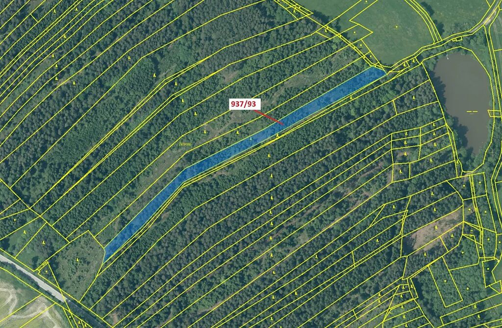 Lesní pozemek o výměře 8 502 m2, parcelní číslo 937/93, podíl 1/1, katastrální území Netřebice, obec Netřebice, obec s rozšířenou působností Kaplice, okres Český Krumlov, Jihočeský kraj. Po těžbě.