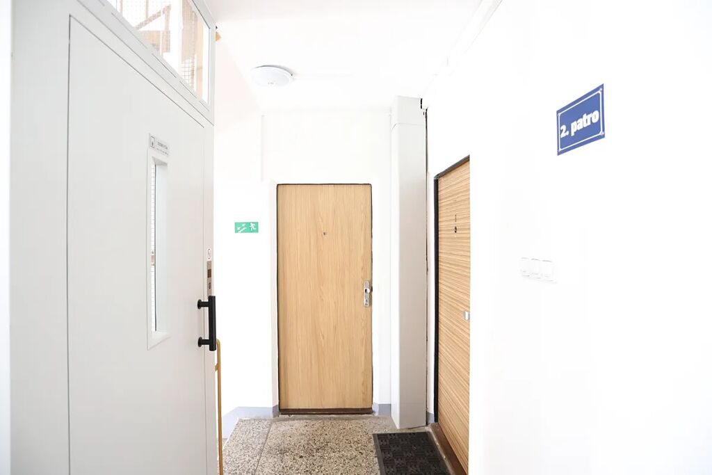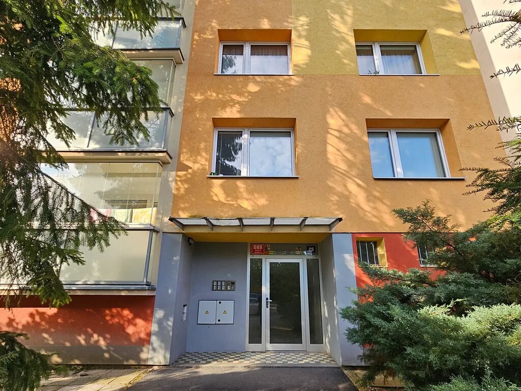 Byt je situován ve druhém patře panelového domu s výtahem, což zajišťuje jeho bezbariérový přístup. Pro maximální pohodlí má byt lodžii o ploše 4.8 m² s příjemným výhledem do okolí a sklep, který poskytuje další úložné prostory. Stav bytu je dobrý, což umožňuje novému majiteli ihned bydlet nebo provést případné úpravy dle svých představ.