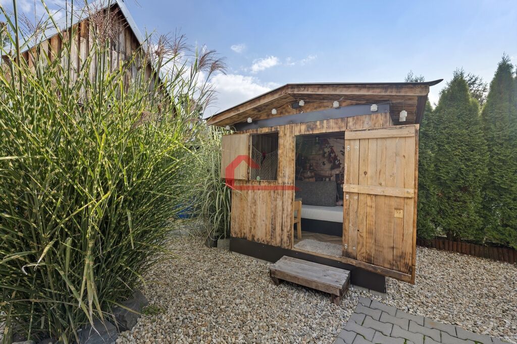 Spolu s domkem je k dispozici zastřešený altán přímo vyzývající k posezení a grilování, dále kůlna s dílnou , kde v podkroví vznikl menší prostor buď jako úložný nebo je vhodný i k přespávání.