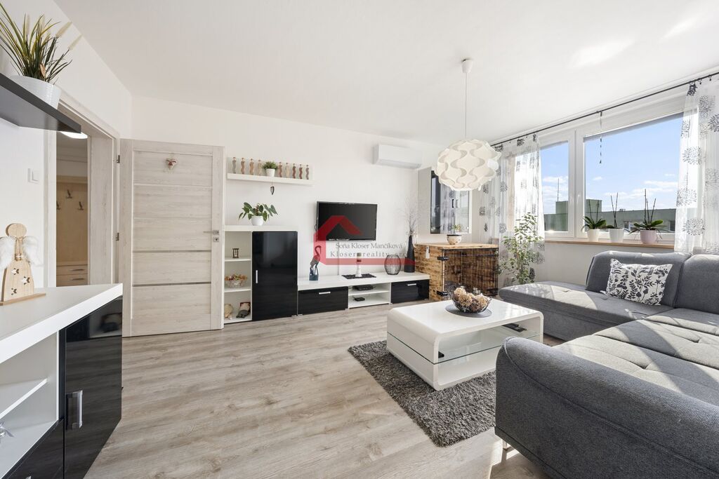 - obývací pokoj s obyvací stěnou a klimatizací s venkovní jednotkou