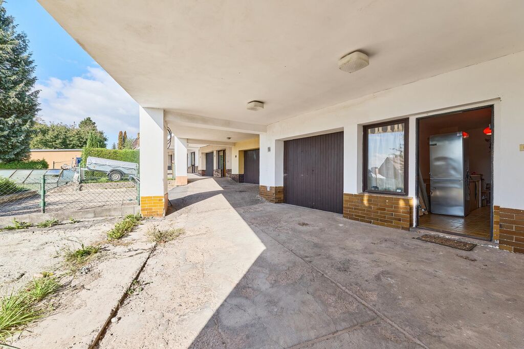 Suterén zahrnuje velkou garáž, 2 sklepy, 2 technické místnosti, prostor s přípravou pro saunu s ochlazovacím bazénkem, wc, koupelnu, pokoj se vstupem na zahradu za domem.