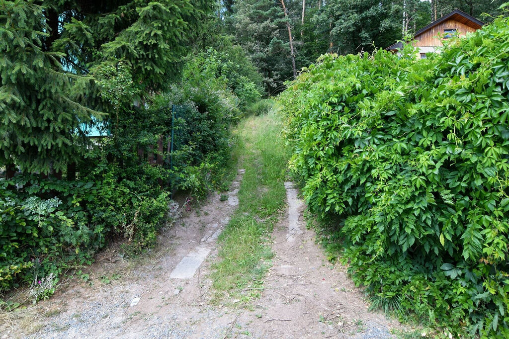 Zahrada je lehce svažitá, obdélníkového tvaru o výměře cca 17 x 60 m a ze dvou svých stran přímo sousedí s lesem.