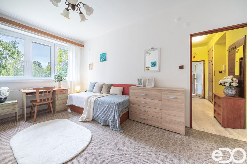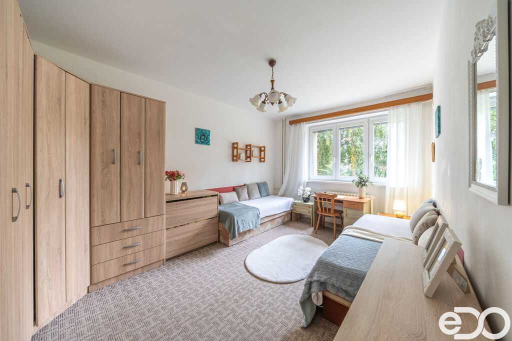 Součástí bytu jsou dva prostorné samostatné pokoje, které mohou sloužit jako dětský pokoj a ložnice. Dále v bytě najdeme kuchyň se spíží, koupelnu a samostatné WC, chodbu a předsíň. Součástí bytu je karma, která slouží k ohřevu teplé vody. Topení je ústřední, v kuchyni najdeme plynový sporák.