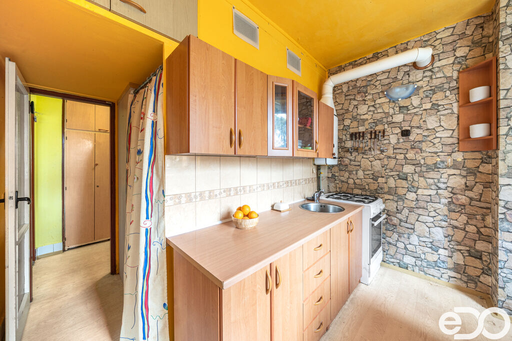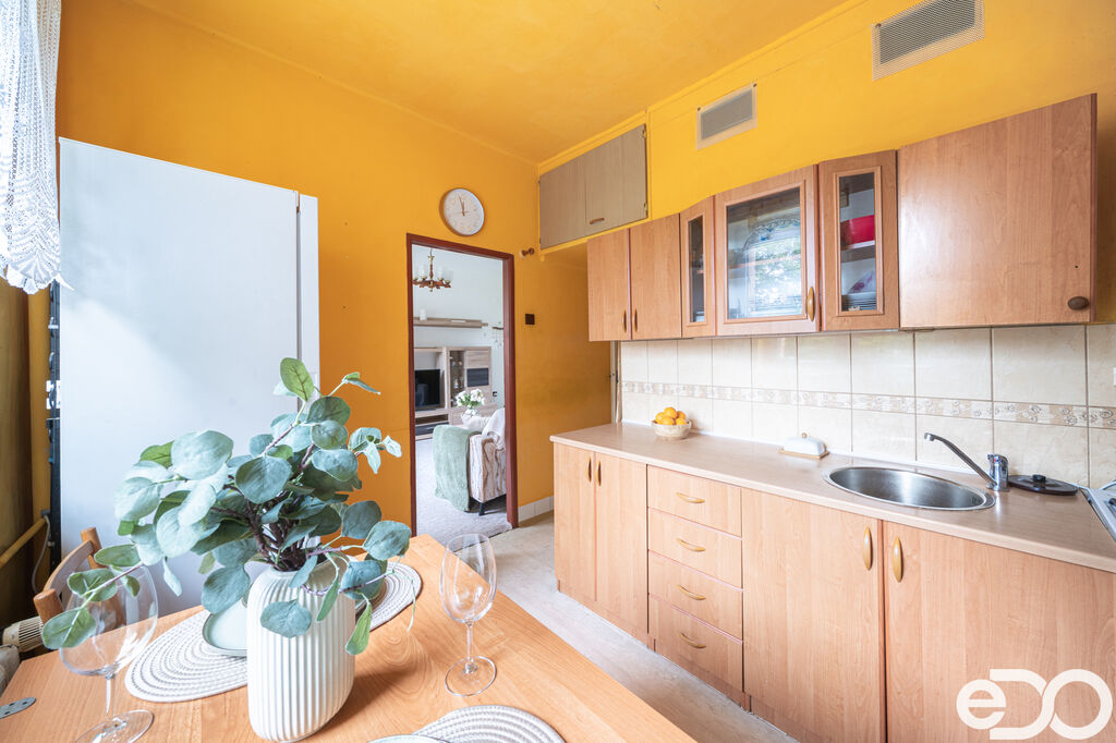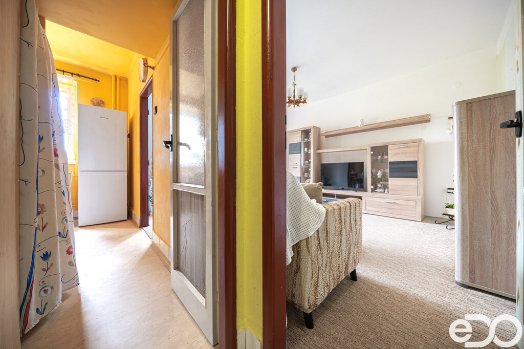 Byt o dispozici 2+1 má užitnou plochu 52,29 m2 + k tomu ještě sklep o velikosti 4,75 m2. Celková plocha bytu je tedy 57,04 m2.