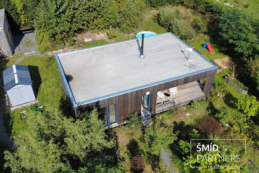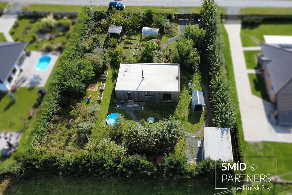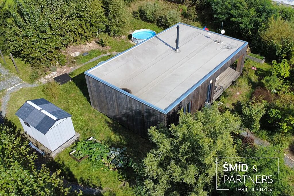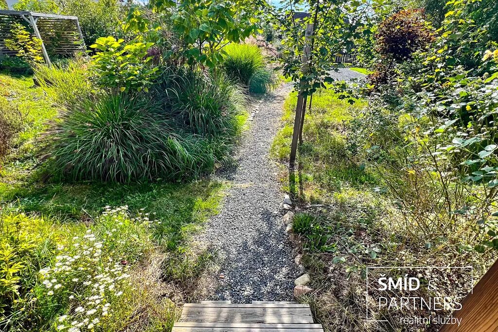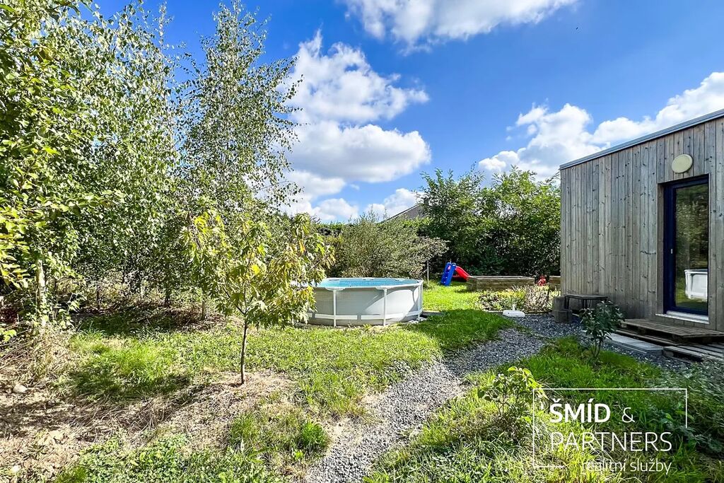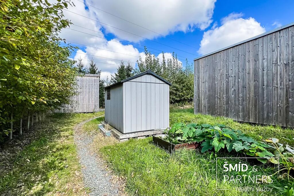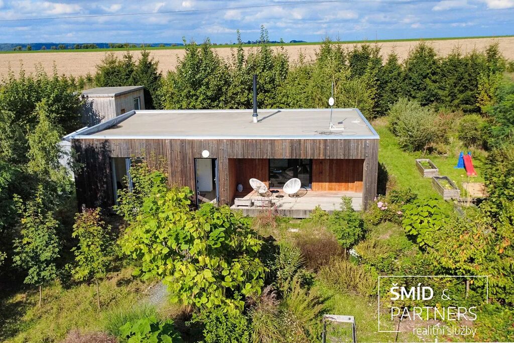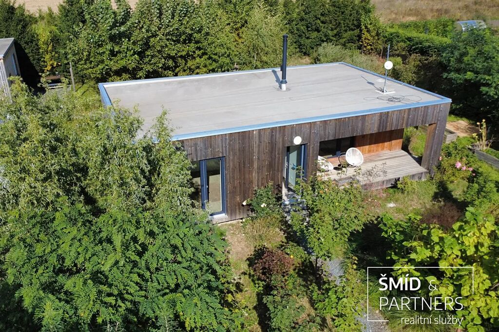 Naše kancelář zprostředkovává prodej velice atraktivního, moderního a ekologického domu v krásné oblasti Posázaví. Tento dům, postavený firmou Blokki specializující se na modulové a modulární stavby domů upcyklací lodních kontejnerů, se nachází v obci Užice - Čekánov v blízkém sousedství města Sázava. Čekánov je skvělé místo pro trávení aktivního života, k čemuž inspiruje okolní příroda s ikonickou řekou Sázavou, rozlehlými lesy a místy nabízejícími mnoho outdoorových aktivit. Pokud hledáte jen klidné útočiště, pak Vám rozlehlá, více než patnáct set metrů velká, zahrada obklopující dům nabídne notnou dávku soukromí a klidu. Zahrada je svou vlastní kapitolou. Je, jak již bylo zmíněno, opravdu prostorově bohatě dimenzovaná a pečlivě vybudovaná jako permakulturní na základě principů přírodních zahrad. Tento koncept zahrad využívá trvale udržitelný a samostatně se obnovující systém bez zásahů, jako jsou např. postřiky proti škůdcům nebo ruční plení. Přestože permakulturní zahrady jsou převážně užitkové, dokáží plnit i funkci okrasnou, čehož je tato zahrada jasným důkazem. Nespornou výhodou je její menší náročnost na údržbu a zálivku, velká druhová rozmanitost s velkým podílem rostlin, které dokáží majitele téměř celoročně zásobit výpěstky. Na zahradě se kromě skleníku, vyvýšených záhonů a plochy pro dětské hraní nachází také velmi praktická stavba dílny (ateliéru), která může sloužit skvěle i jako samostatná pracovna či případně domek pro hosty. Je zde zavedena elektřina a taktéž voda. K ukládání zahradního, sportovního či jiného vybavení jsou k dispozici další dva montované zahradní domky.