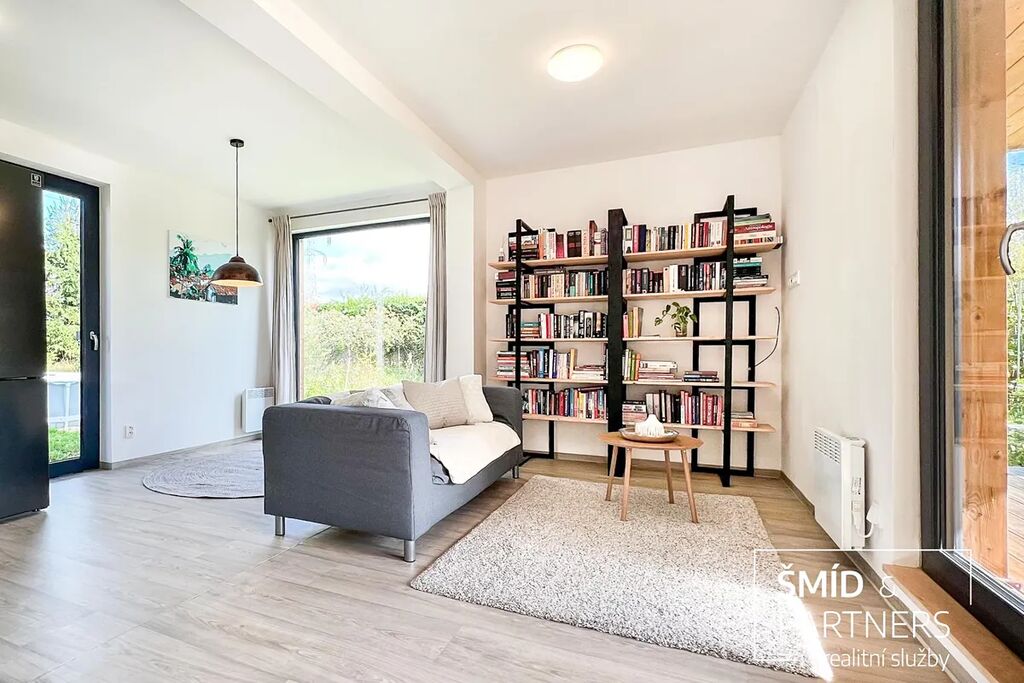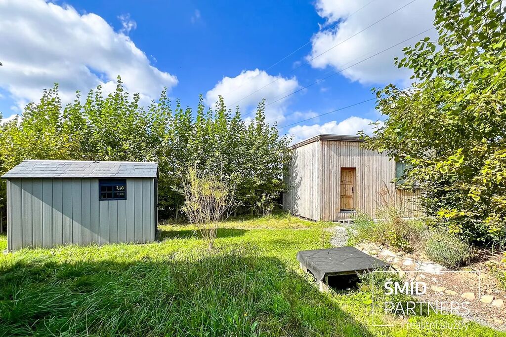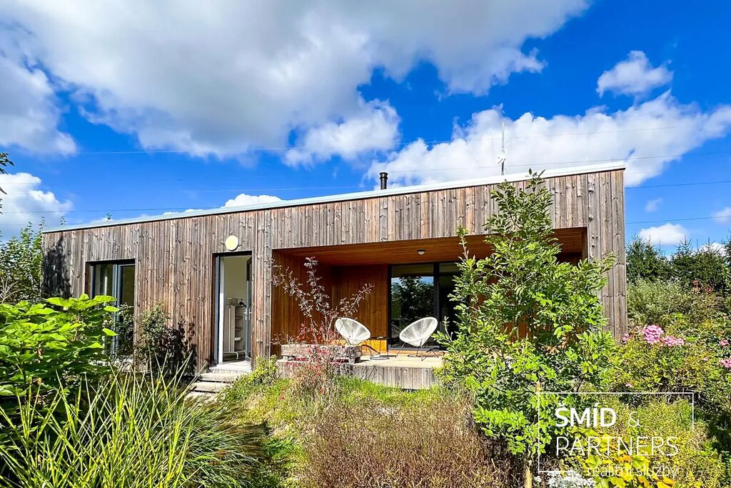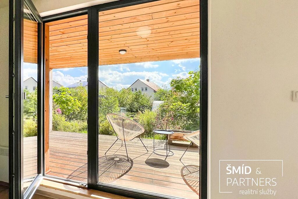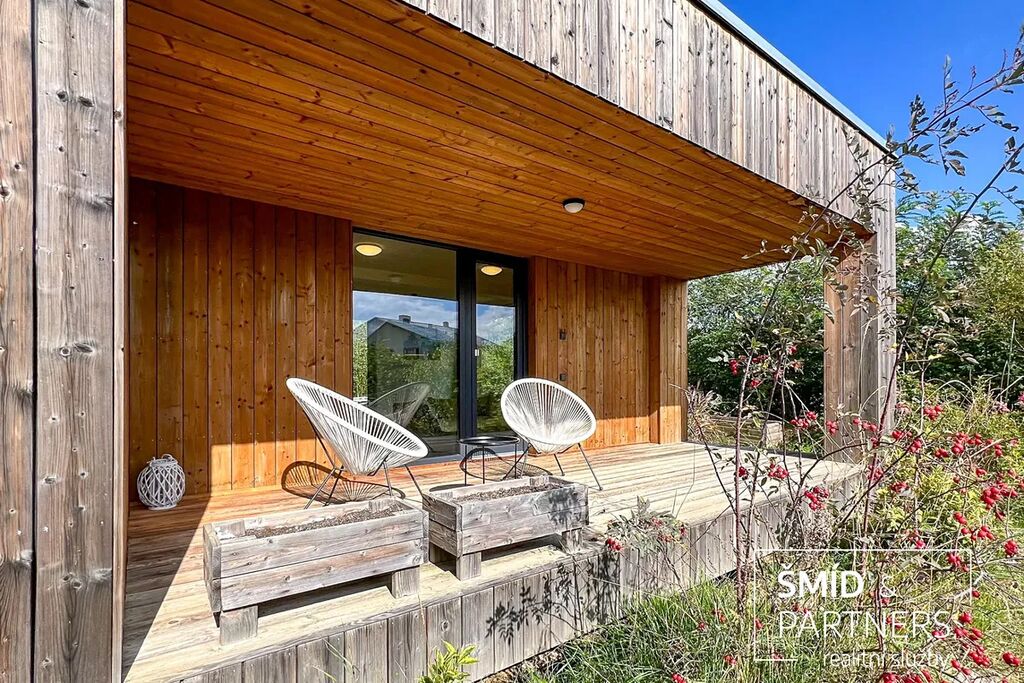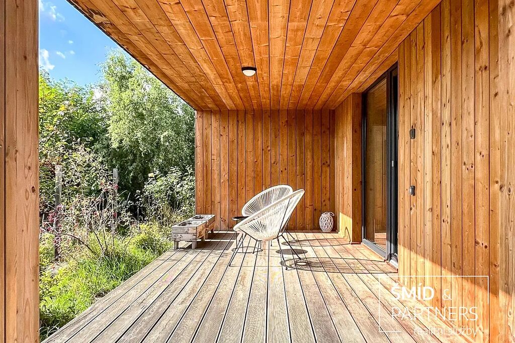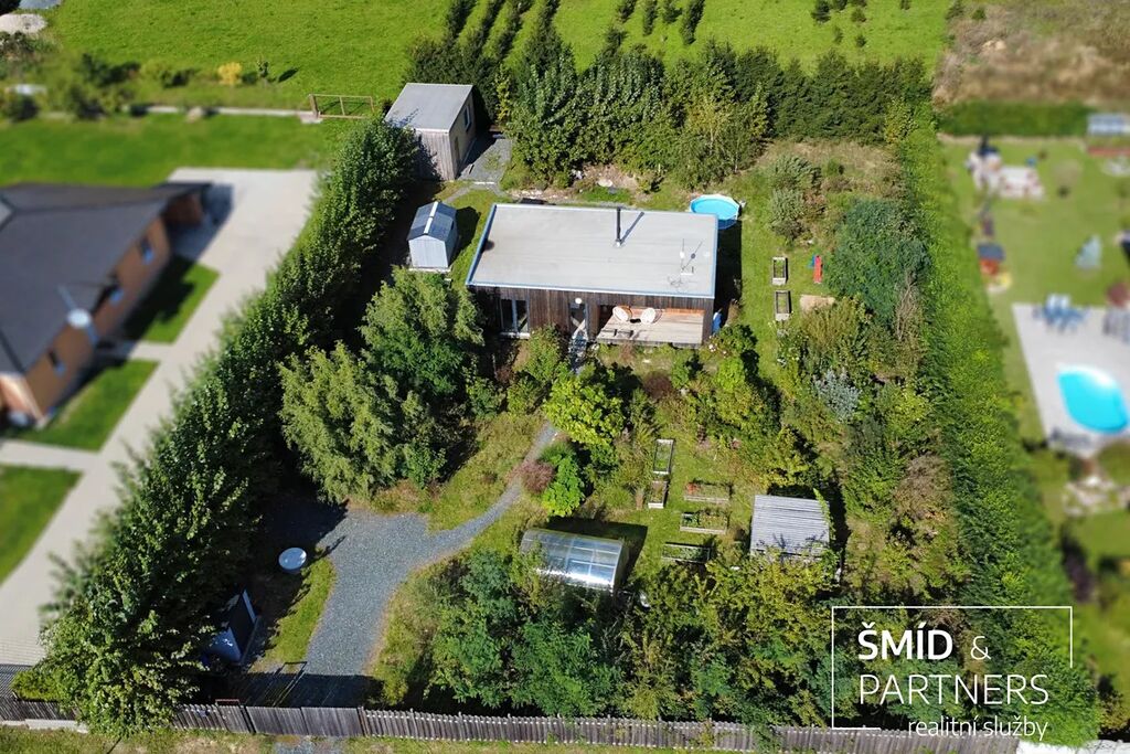 Naše kancelář zprostředkovává prodej velice atraktivního, moderního a ekologického domu v krásné oblasti Posázaví. Tento dům, postavený firmou Blokki specializující se na modulové a modulární stavby domů upcyklací lodních kontejnerů, se nachází v obci Užice - Čekánov v blízkém sousedství města Sázava. Čekánov je skvělé místo pro trávení aktivního života, k čemuž inspiruje okolní příroda s ikonickou řekou Sázavou, rozlehlými lesy a místy nabízejícími mnoho outdoorových aktivit. Pokud hledáte jen klidné útočiště, pak Vám rozlehlá, více než patnáct set metrů velká, zahrada obklopující dům nabídne notnou dávku soukromí a klidu. Zahrada je svou vlastní kapitolou. Je, jak již bylo zmíněno, opravdu prostorově bohatě dimenzovaná a pečlivě vybudovaná jako permakulturní na základě principů přírodních zahrad. Tento koncept zahrad využívá trvale udržitelný a samostatně se obnovující systém bez zásahů, jako jsou např. postřiky proti škůdcům nebo ruční plení. Přestože permakulturní zahrady jsou převážně užitkové, dokáží plnit i funkci okrasnou, čehož je tato zahrada jasným důkazem. Nespornou výhodou je její menší náročnost na údržbu a zálivku, velká druhová rozmanitost s velkým podílem rostlin, které dokáží majitele téměř celoročně zásobit výpěstky. Na zahradě se kromě skleníku, vyvýšených záhonů a plochy pro dětské hraní nachází také velmi praktická stavba dílny (ateliéru), která může sloužit skvěle i jako samostatná pracovna či případně domek pro hosty. Je zde zavedena elektřina a taktéž voda. K ukládání zahradního, sportovního či jiného vybavení jsou k dispozici další dva montované zahradní domky.