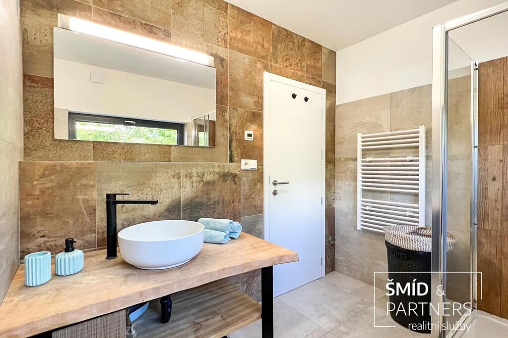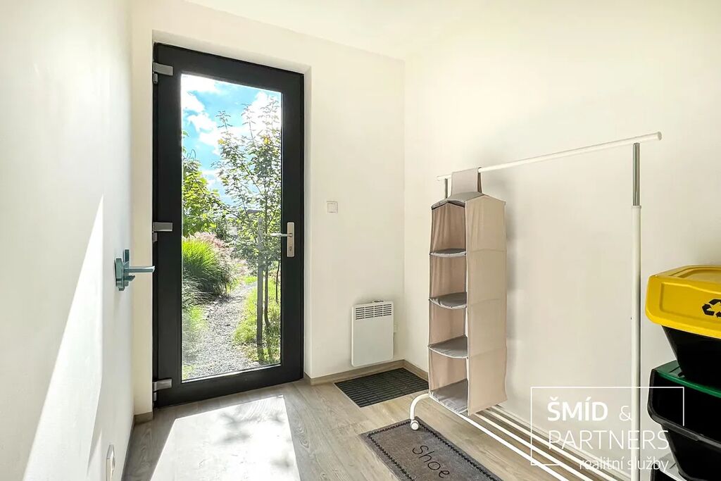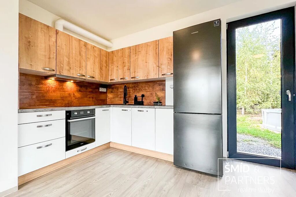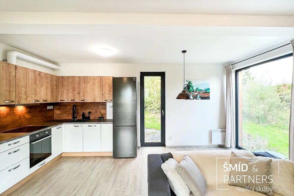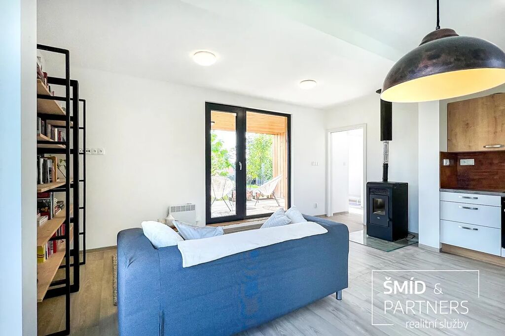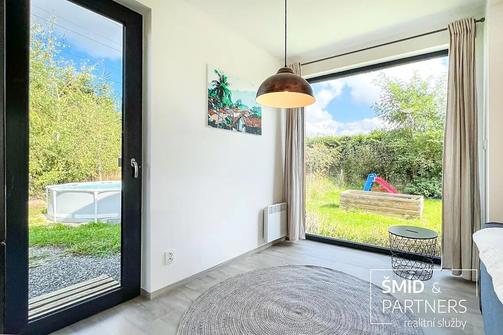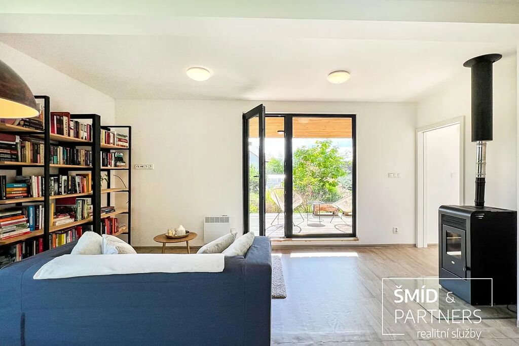 Naše kancelář zprostředkovává prodej velice atraktivního, moderního a ekologického domu v krásné oblasti Posázaví. Tento dům, postavený firmou Blokki specializující se na modulové a modulární stavby domů upcyklací lodních kontejnerů, se nachází v obci Užice - Čekánov v blízkém sousedství města Sázava. Čekánov je skvělé místo pro trávení aktivního života, k čemuž inspiruje okolní příroda s ikonickou řekou Sázavou, rozlehlými lesy a místy nabízejícími mnoho outdoorových aktivit. Pokud hledáte jen klidné útočiště, pak Vám rozlehlá, více než patnáct set metrů velká, zahrada obklopující dům nabídne notnou dávku soukromí a klidu. Zahrada je svou vlastní kapitolou. Je, jak již bylo zmíněno, opravdu prostorově bohatě dimenzovaná a pečlivě vybudovaná jako permakulturní na základě principů přírodních zahrad. Tento koncept zahrad využívá trvale udržitelný a samostatně se obnovující systém bez zásahů, jako jsou např. postřiky proti škůdcům nebo ruční plení. Přestože permakulturní zahrady jsou převážně užitkové, dokáží plnit i funkci okrasnou, čehož je tato zahrada jasným důkazem. Nespornou výhodou je její menší náročnost na údržbu a zálivku, velká druhová rozmanitost s velkým podílem rostlin, které dokáží majitele téměř celoročně zásobit výpěstky. Na zahradě se kromě skleníku, vyvýšených záhonů a plochy pro dětské hraní nachází také velmi praktická stavba dílny (ateliéru), která může sloužit skvěle i jako samostatná pracovna či případně domek pro hosty. Je zde zavedena elektřina a taktéž voda. K ukládání zahradního, sportovního či jiného vybavení jsou k dispozici další dva montované zahradní domky.