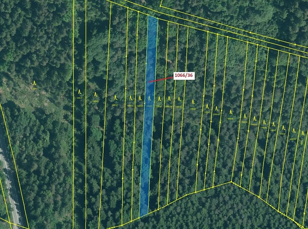 Lesní pozemek o výměře 1983 m2, parcelní číslo 1066/36, podíl 1/1, katastrální území Strážkovice, obec Strážkovice, obec s rozšířenou působností České Budějovice, okres České Budějovice, Jihočeský kraj. Po těžbě.