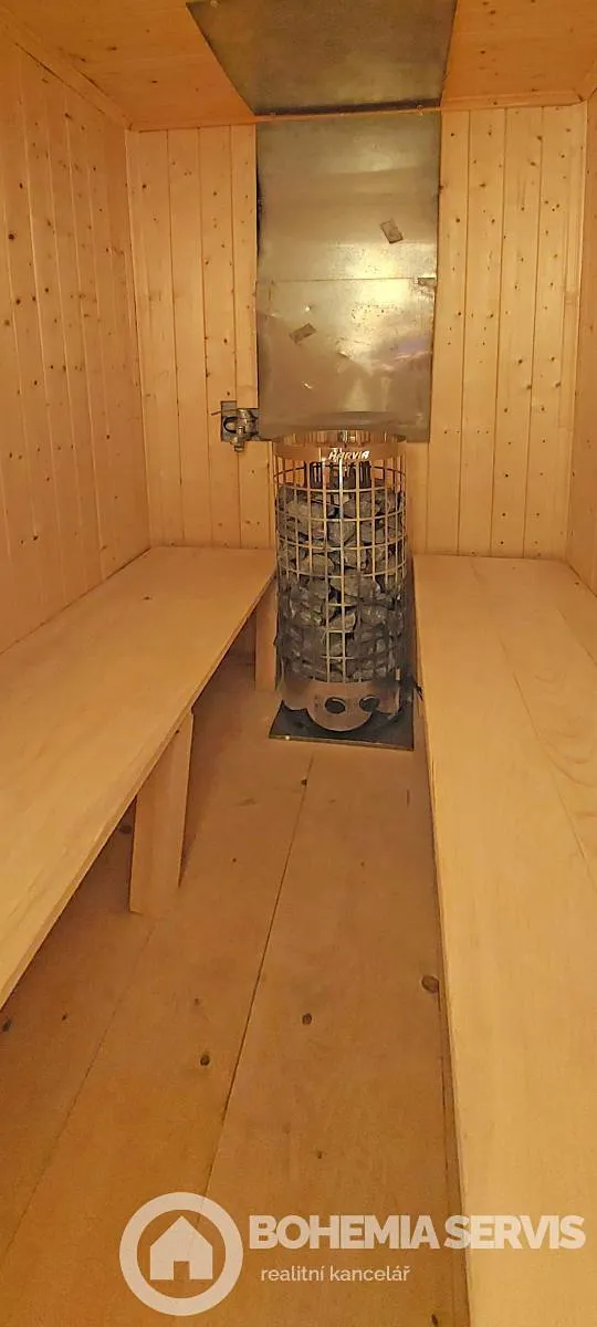 V suterénu je prostorná garáž pro dvě auta, dveře do sklepa, komora, kotelna, úložný prostor a odpočinková místnost po sauně. Z garáže je vjezd a vstup na zahradu. Dům leží v klidové rezidenční zóně s navazující oblastí tří rybníků a hájů vhodných pro procházky. Čáslav má dobrou dostupnost do větších měst a poskytuje veškerou občanskou vybavenost. Zveme vás na prohlídku.