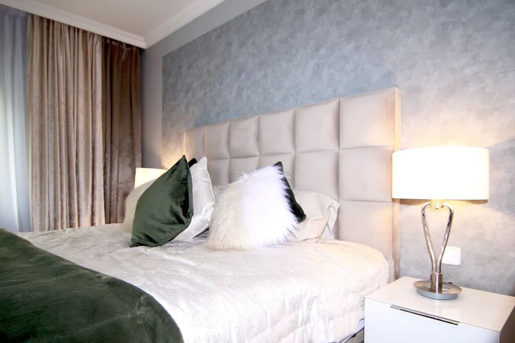 Luxusní interiérové vybavení: Byt prošel nedávnou rekonstrukcí s použitím špičkových materiálů. Kvalitní sanita Villeroy & Boch a Grohe. Kuchyň je vyrobena na míru a disponuje moderními spotřebiči, mramorovou pracovní deskou a obkladem. Parapety na oknech jsou mramorové, což dodává bytu punc luxusu. Byt má dřevěné parkety v obytných místnostech a velkoformátovou dlažbu v koupelnách. Výška stropů 2,70 m a dřevěná okna s venkovními žaluziemi dodávají prostoru eleganci a moderní styl. Vstupní dveře jsou bezpečnostní typu NEXT.