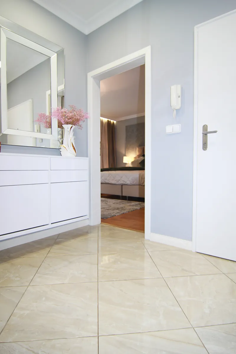 2 koupelny a samostatné WC: V bytě jsou dvě plně vybavené koupelny a samostatná toaleta pro hosty.