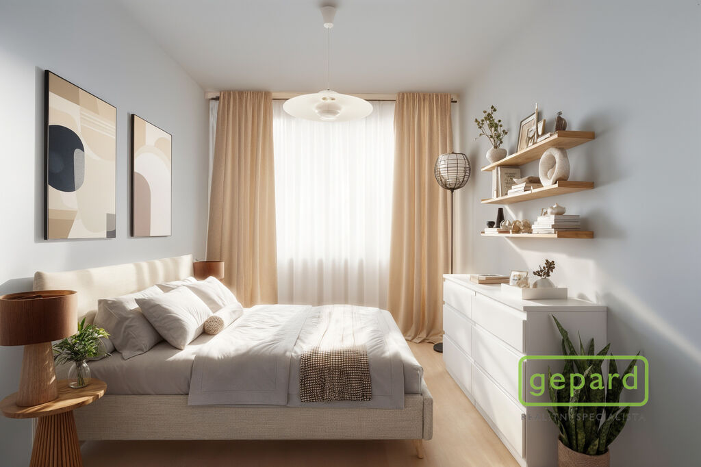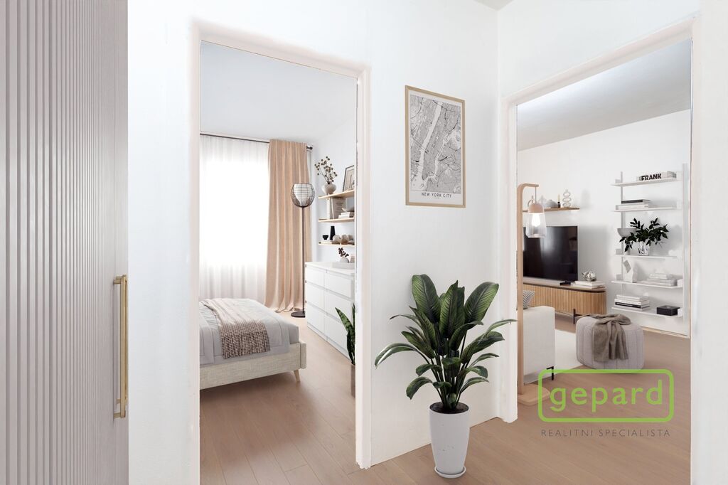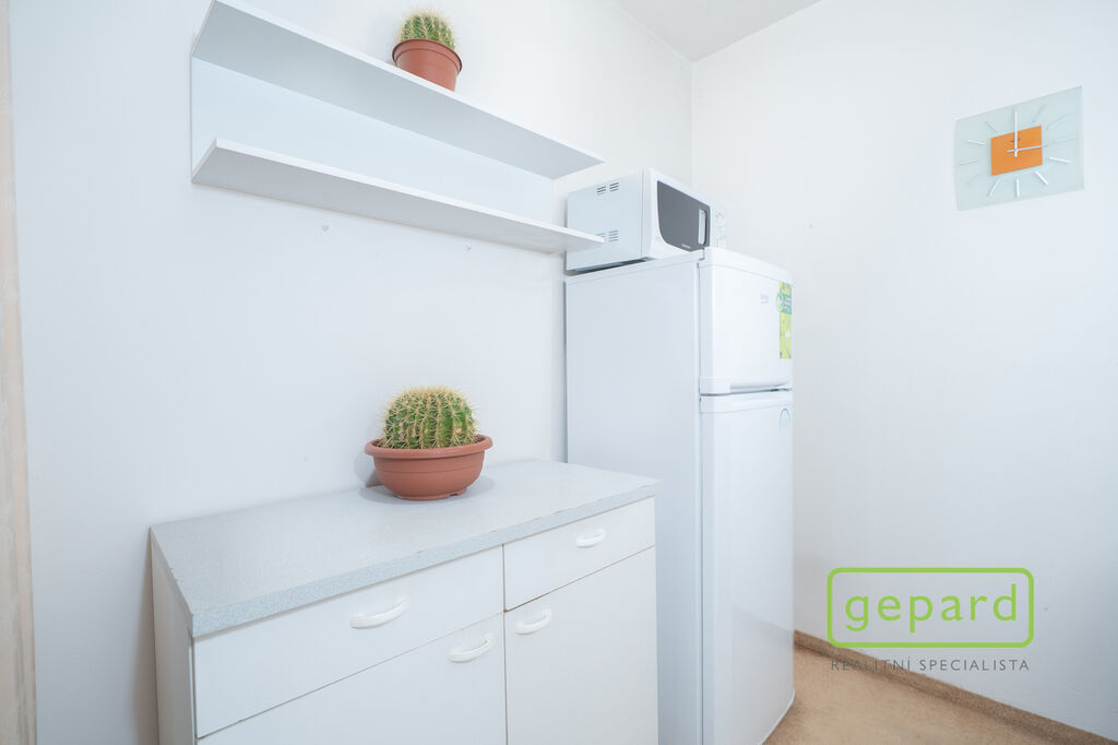 Dispozici tvoří obývací pokoj s kuchyňským koutem, ložnice a koupelna s WC. Velkou výhodou jsou okna orientovaná na jih do klidného vnitrobloku, která zajišťují dostatek světla po celý den a příjemnou atmosféru.