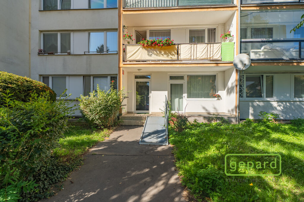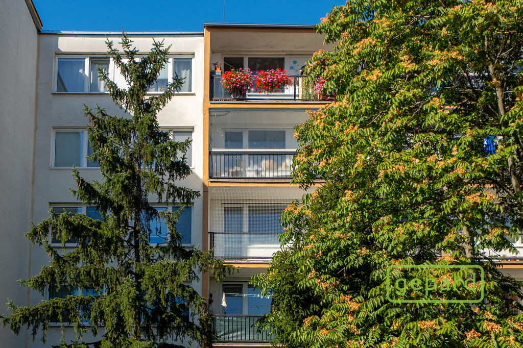 Byt o podlahové ploše 38,3 m² + balkon 5,8 m² se nachází ve 3. patře udržovaného a zatepleného panelového domu s výtahem. K bytu náleží také praktická komora hned vedle bytu (1 m²) a sklep v suterénu (1,2 m²), ideální na uložení sezónních věcí.