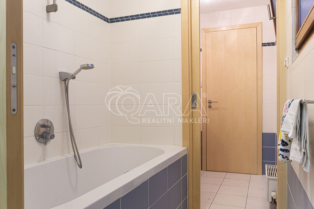 Koupelna je vybavena vanou a toaletou. Díky francouzským oknům v obývacím pokoji je byt velmi světlý, venkovní žaluzie na oknech umožňují regulaci světla podle vašich potřeb. Pokoje jsou vybaveny klimatizací. Byt se pronajímá nezařízený.