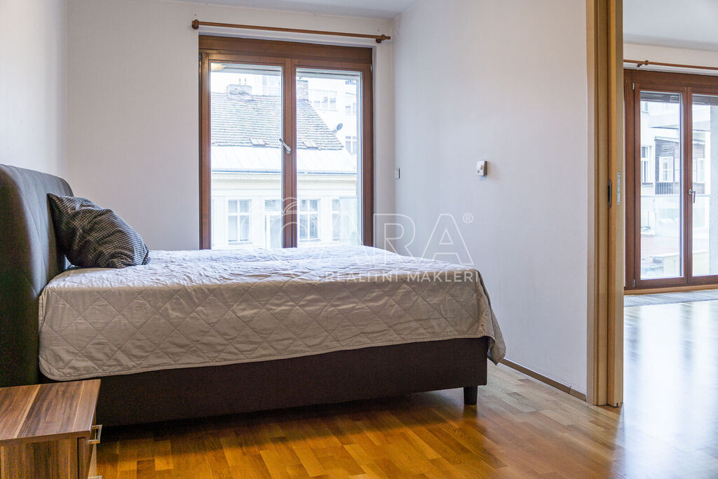 Nabízím k dlouhodobému pronájmu prostorný a světlý byt 2+kk o ploše 60 m² s velkým balkonem, parkovacím stáním a sklepem, situovaný v lokalitě nedaleko Václavského náměstí v Galerii Myšák. Přestože se byt nachází v samém centru Prahy, poskytuje díky balkonu orientovanému do klidného vnitrobloku příjemné a tiché bydlení.