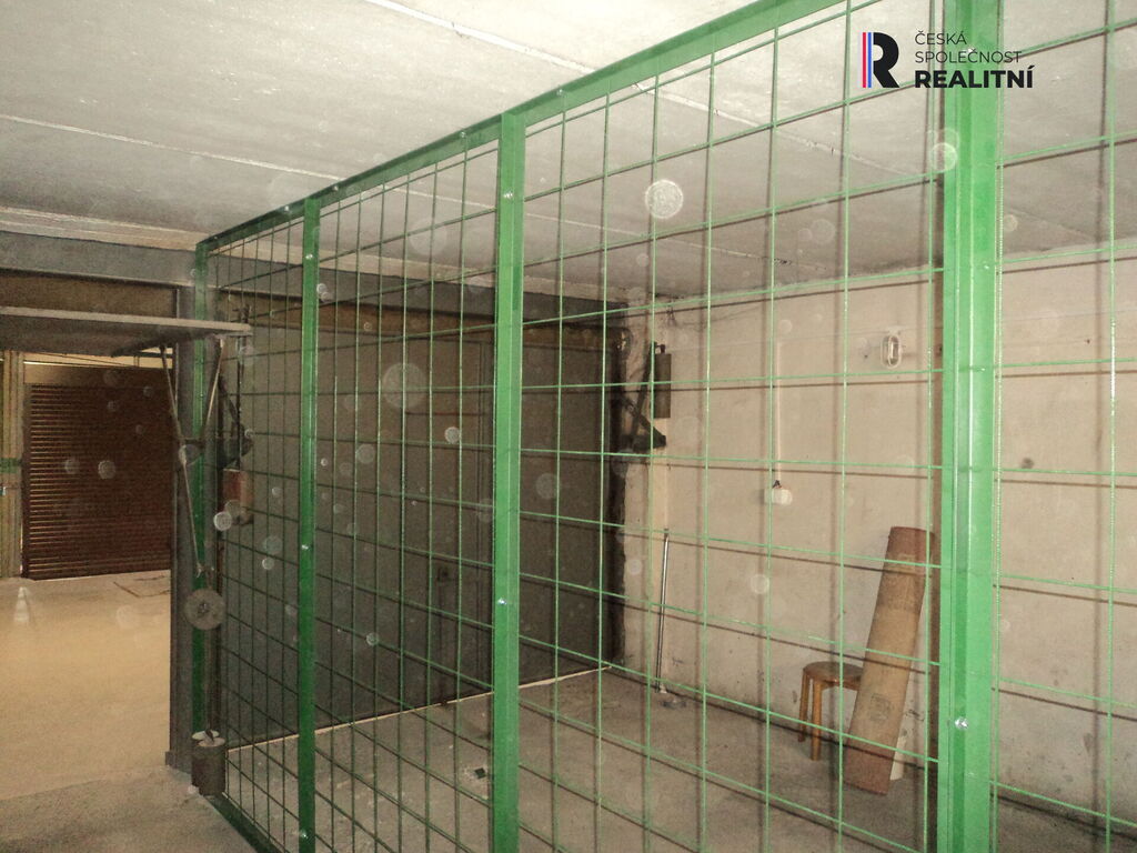 Garáž, 18 m2, družstevní, garáž se otevírá na čidlo, v budově jsou kamery, dveře do garáže na klíč, bezpečnostní zámek, v garáži je okno, mříze v okně.