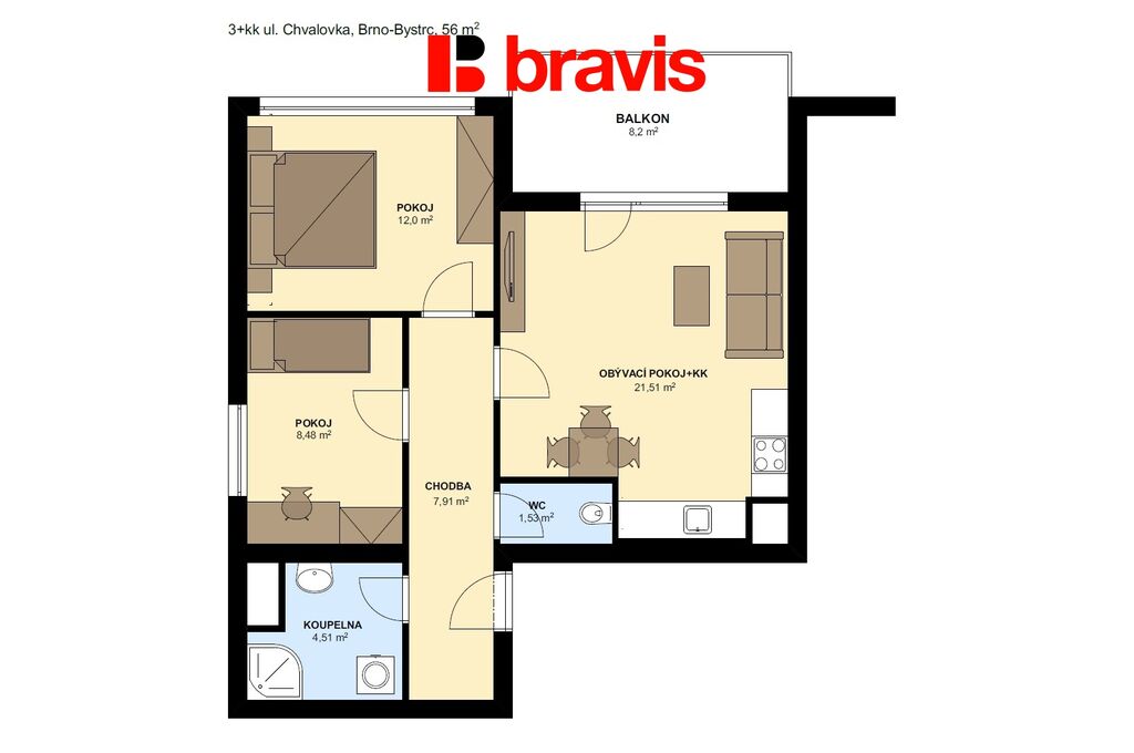 Tento byt je ideální volbou pro ty, kdo hledají moderní, pohodlné a klidné bydlení s výbornou dostupností do centra Brna i přírody.