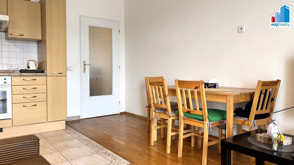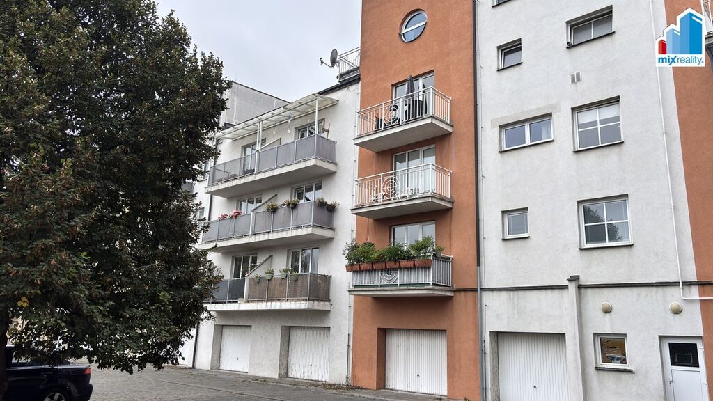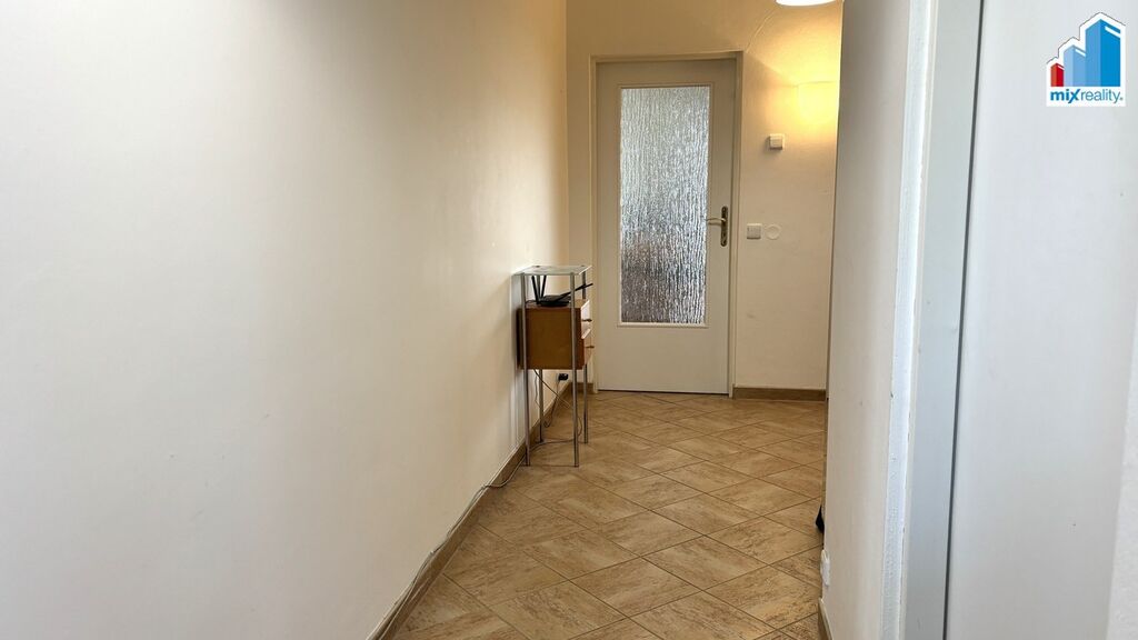 Dispozice bytu: předsíň, chodba, koupelna s vanou, samostatné WC, ložnice a prostorný obývací pokoj s kuchyňským koutem a vstupem na balkon. K bytu náleží také sklepní kóje a vlastní parkovací stání. K bytu je možné si dokoupit garáž o velikosti 27 m² s elektřinou.