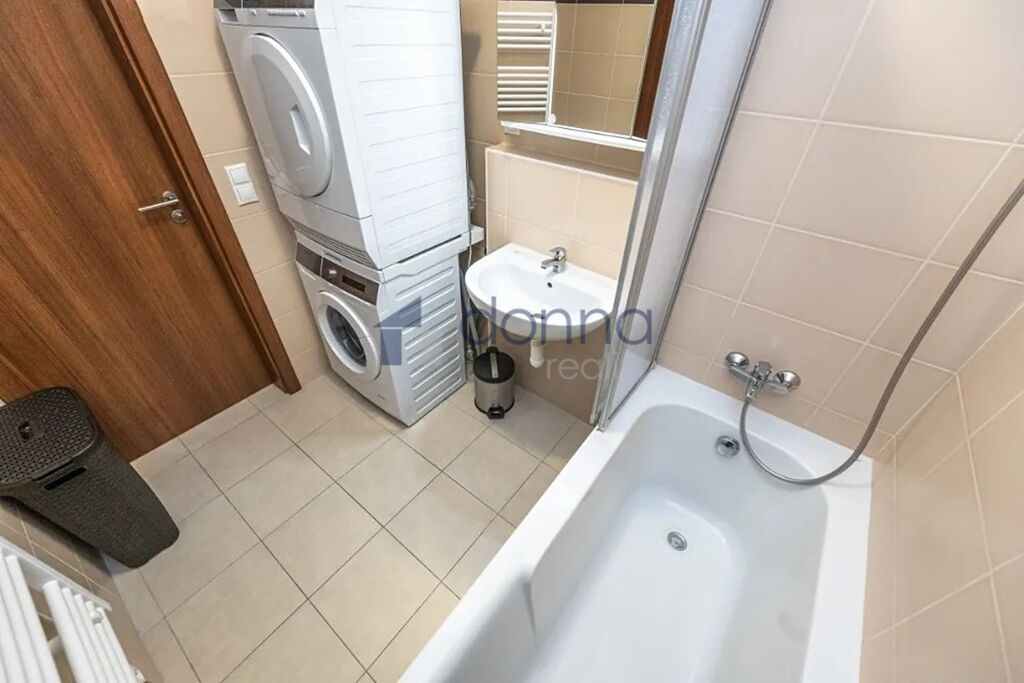 V ložnici letiště s vestavěnou skříní. Koupelna s vanou, pračkou a sušičkou. WC samostatné.