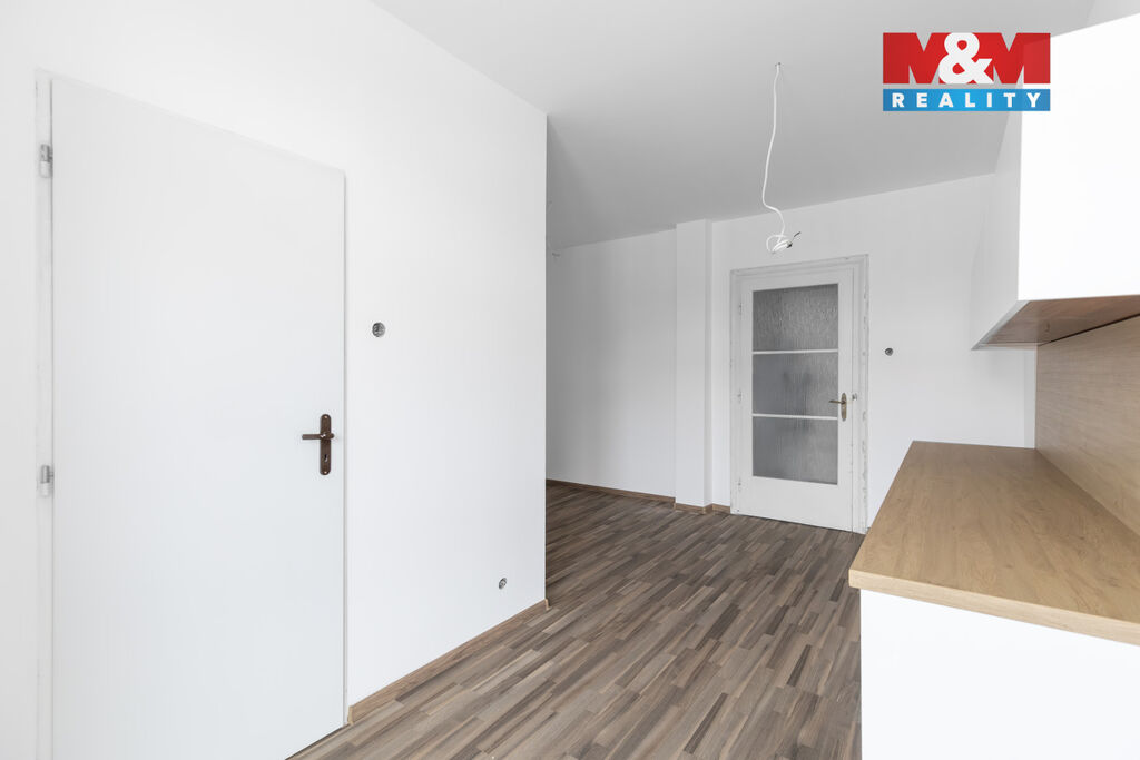V bytě byla započata rekonstrukce, kterou si nový majitel může dokončit podle vlastních představ – a vytvořit si tak bydlení přesně na míru.