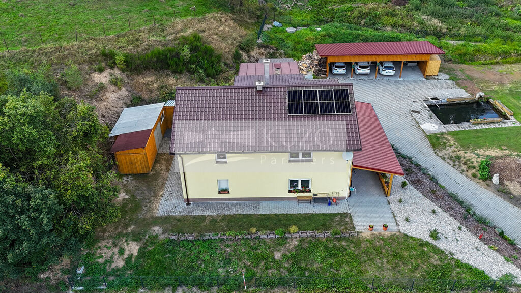 Dům byl v roce 2019 téměř kompletně přestavěn, kdy původní stavba byla až na přilehlou garáž zdemolována a na jejím místě byla postavena novostavba. Jedná se o cihlovou stavbu se zdmi o tloušťce 45 cm + 10 cm zateplením polystyrenem. Střecha je plechová s imitací tašek, zateplená vatou 15 – 20 cm. Před dvěma měsíci byla zhotovena fotovoltaika na ohřev vody. Topení je centrální elektrické a centrální na tuhá paliva (dřevo je zahrnuto v ceně a vystačí na další tři sezóny). Voda je do objektu rozvedena z čistého horského pramene.