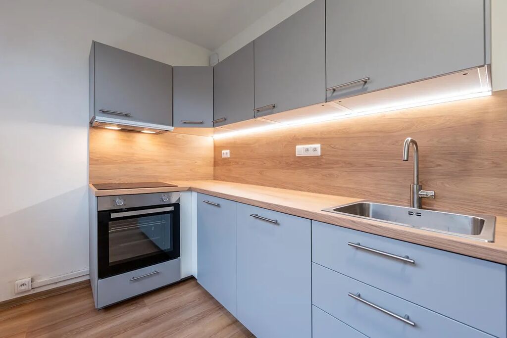 Nabízíme k pronájmu byt o dispozici 3+1 a výměře 65 m2 ve 3.patře v panelovém domě s výtahem na adrese Kmochova 3158/8 V Ústí nad Labem. Byt prošel celkovou rekonstrukcí - nové podlahy, výmalba, elektroinstalace, koupelna, kuchyň. V Kuchyni je rohová kuchyňská linka s vestavěnými spotřebiči. V koupelně je prostorná vana, toaleta, umyvadlo se skříňkou a přípojka na pračku, vše v moderním designu. V obývacím pokoji je vstup na zasklenou lodžii.