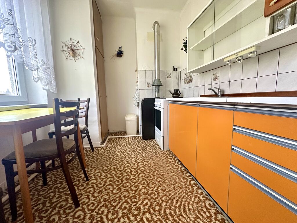 Jednotka je v původním, ale zachovalém stavu. Součástí je kuchyňská linka a vybavení viz foto. K bytu náleží dvě sklepní kóje v suterénu domu. V bytě jsou plastová okna. Byt je vytápěn vlastním plynovým kotlem umístěným v kuchyni. Výhodou je bezproblémové parkovaní u domu.