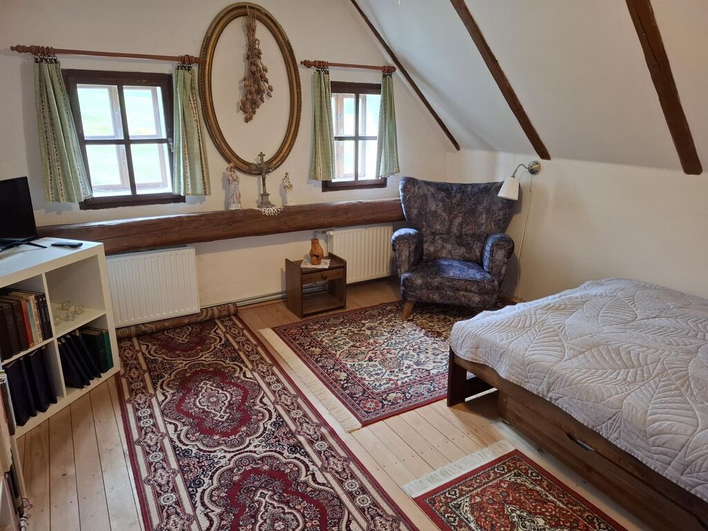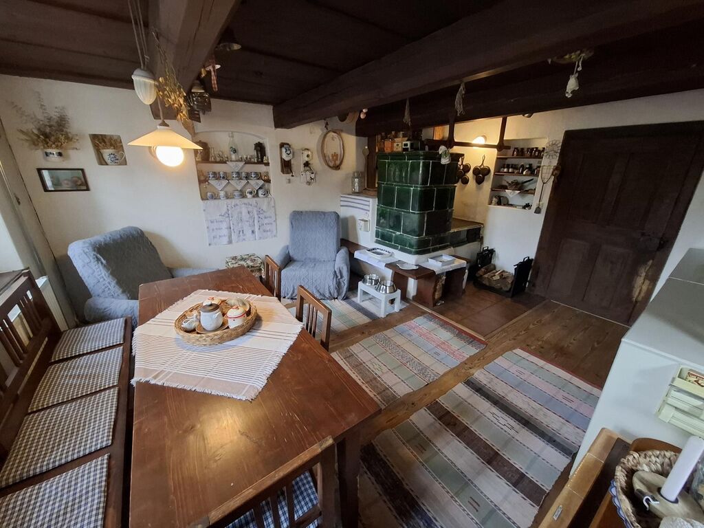 IS: elektřina (230/380V)- rozvody v mědi, vytápění kotel Protherm ( 6 let) , 10x deskové radiátory Vogel Noot ve všech místnostech, koupelna + chodba elektrické podlahové vytápění s termostatem elektrický žebřík s patronou ( 2019), rozvody topení provedeny v uhlíkové oceli SteelPress, regulace teploty na kotli přes GSM modul, v obývací světnici funkční kachlová kamna, radiátory a elektrická kachlová kamna, obývací pokoj deskový radiátor a elektrická kachlová kamna, koupelna elektrický žebřík a podlahové vytápění, v ostatní části nemovitosti radiátory napojeny na elektrický kotel, TUV nepřímotopový zásobník Dražice 125l propojen s elektrokotlem ( ohřev do radiátorů i teplé užitkové vody), voda z vlastní vrtané studny hloubka 24m darling ve sklepě ( 1997), odpady řešeny svodem do ČOV, vyčištěnou vodu lze použít na zálivku do zahrady rozvody cca 77m, dešťová voda jímána do 4 komorové betonové nádrže za domem lze též použít na rozvod vody pro navazující zahradu, plyn nezaveden možnost přípojky, zavedena drátová přípojka ( na případný kabelový internet), zdivo smíšené ( žulový kámen a cihla), podlahy betonové s dřevěnými prkny, dlažba, střecha pálená taška Bramac izolovaná 15 cm izolační vaty a parozábrany ( 1996), stropy - obytná světnice nad ní dřevěný záklop + trámový strop ostatní stropy betonové, podkroví- sádrokarton s přiznanými trámy ( rekonstrukce 2014 ), okna- kastlová dřevěná vnitřní původní vnější dřevěná dubová izolační dvojsklo ( 2021), dveře vyráběné na míru s dřevěnými zárubněmi.