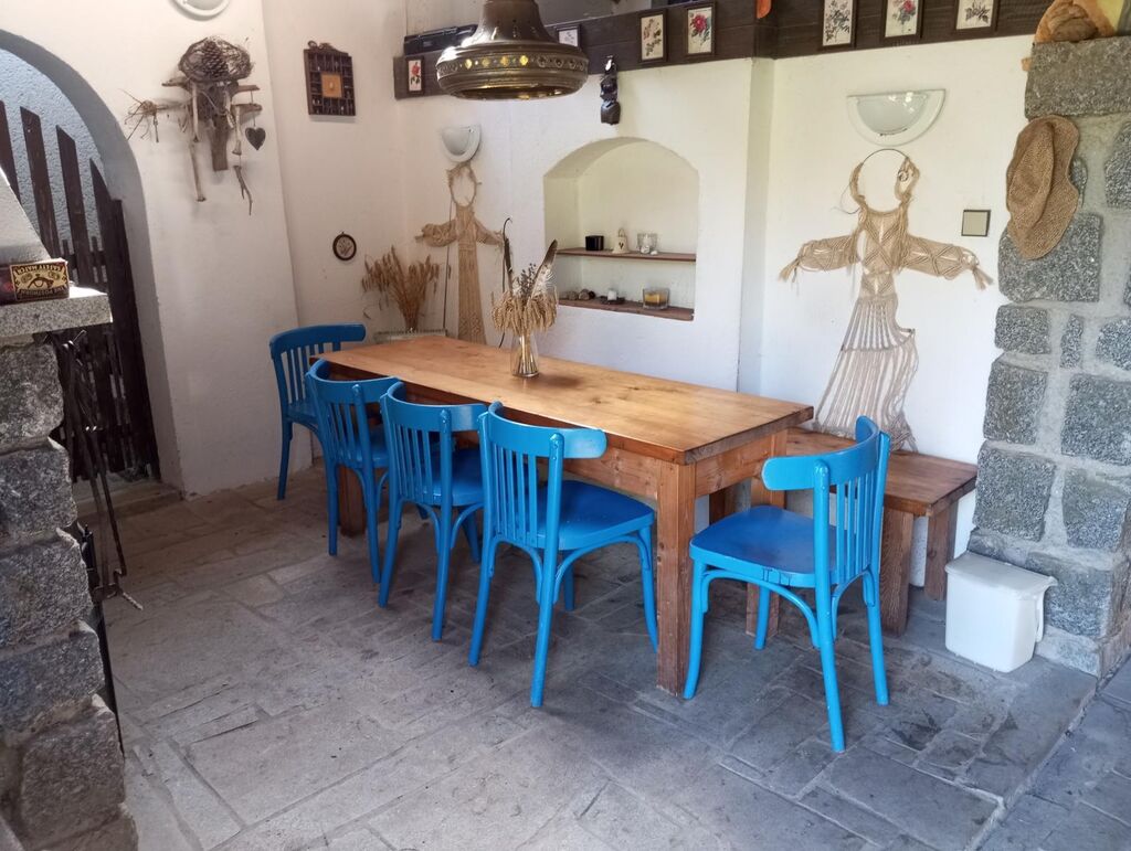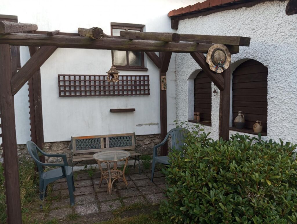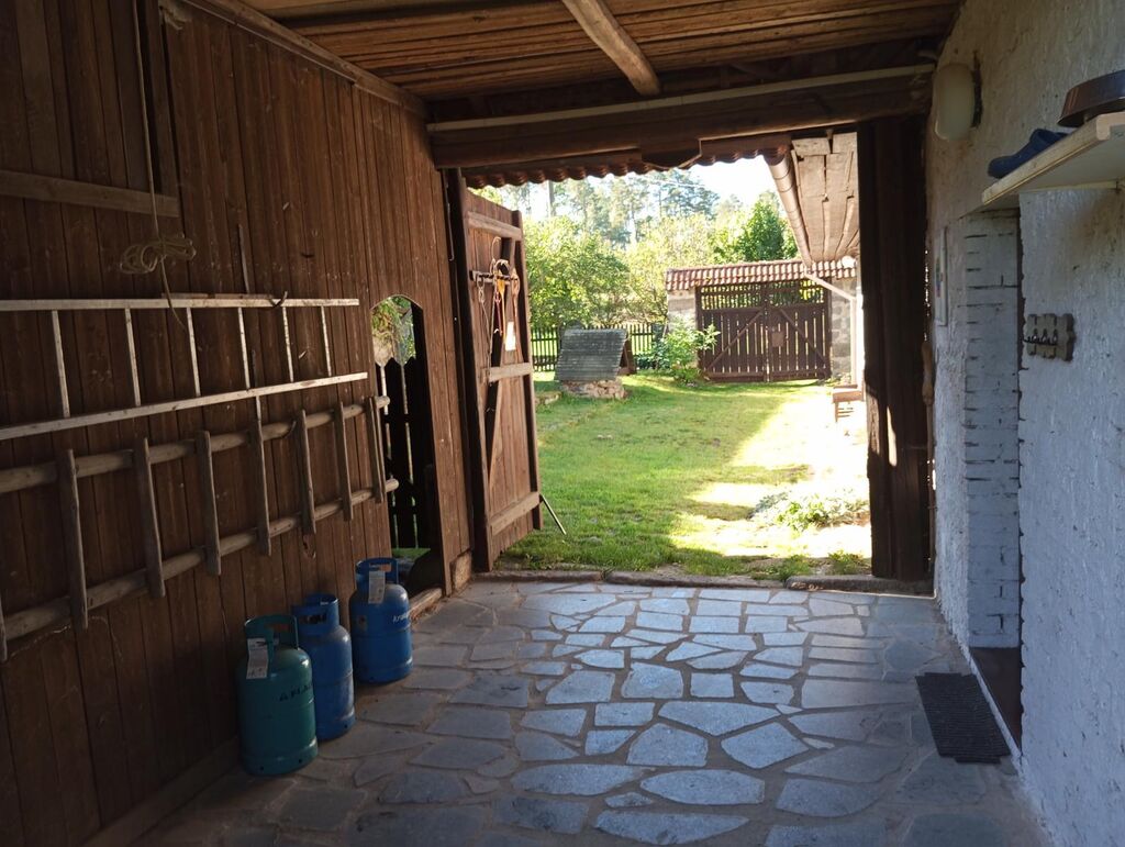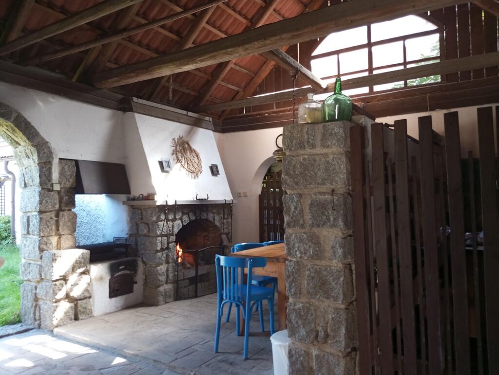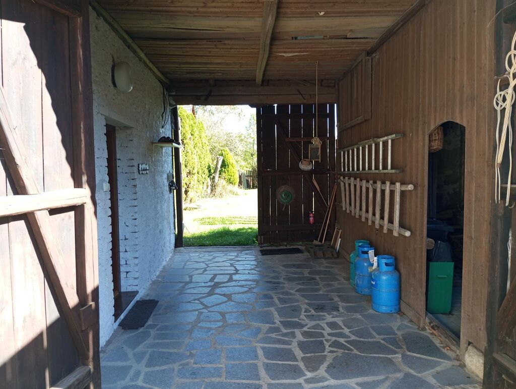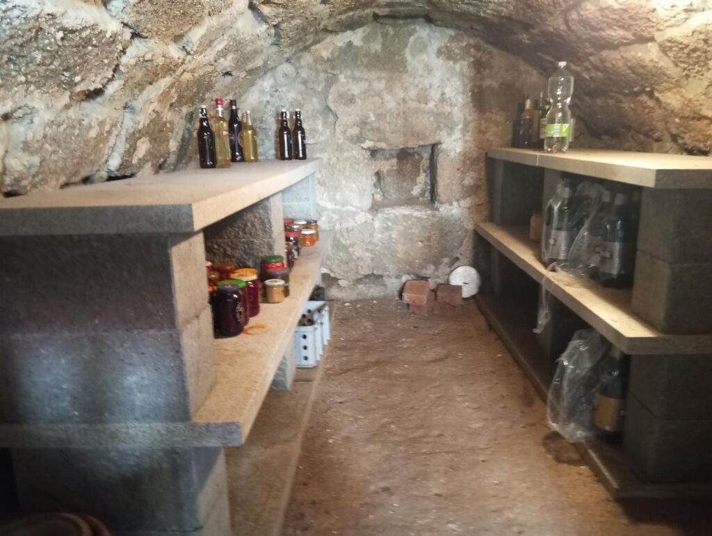 Venkovní část kamenný valený sklep s klenbou sypaný a polozapuštěný uvnitř regály z leštěné žuly, zastřešený vstup na zahradu navazující na dřevník a venkovní zastřešené posezení ( krb, udírna),vše vydlážděno masivním kamenem, dílna a přístavek na zázemí nemovitosti. Na zahradě přístřešek (kůlna) na zázemí domu a plechový domek na nářadí, ovocné stromy (ryngle, jablka, švestky a vinná réva).