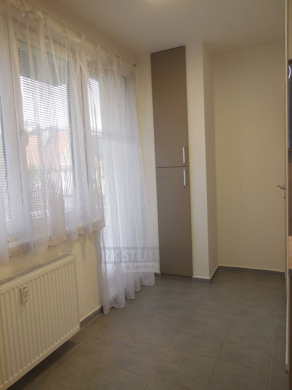 Dispozice: prostorná vstupní místnost s předsíňovou stěnou a místem pro další úložný nábytek, samostatné WC, kuchyň do L s jídelním prostorem, vstupem na balkon, se zděnou spižírnou, koupelna se sprchovým koutem, umyvadlem a prostorem pro pračku, větší kompletně zařízený a vybavený obývací pokoj, větší zařízená ložnice, vše viz foto inzerátu (reálný stav a zařízení), k bytu náleží sklepní kóje a možnost užívání všech společných prostor v domě.