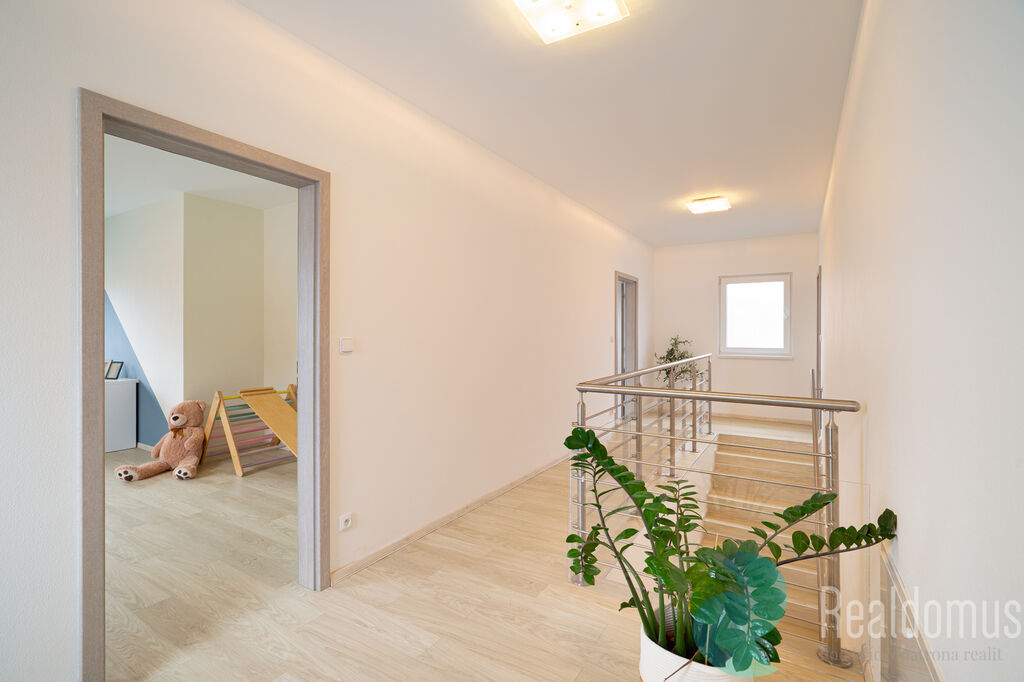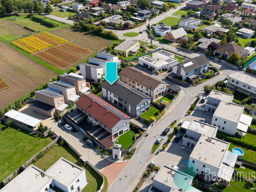 Tato elegantní luxusní stavba byla dokončena v roce 2019. Jedná se o polovinu dvojdomu (mezonetovou bytovou jednotku) o dispozici 5+kk s garáží, zahradou a terasou.