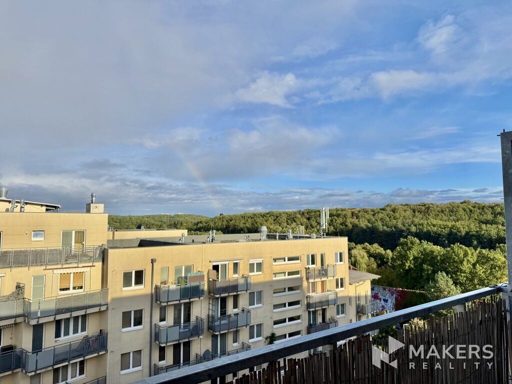 Byt se nachází v posledním 6. patře moderního domu s výtahem, což zaručuje maximální klid a krásný výhled na park.