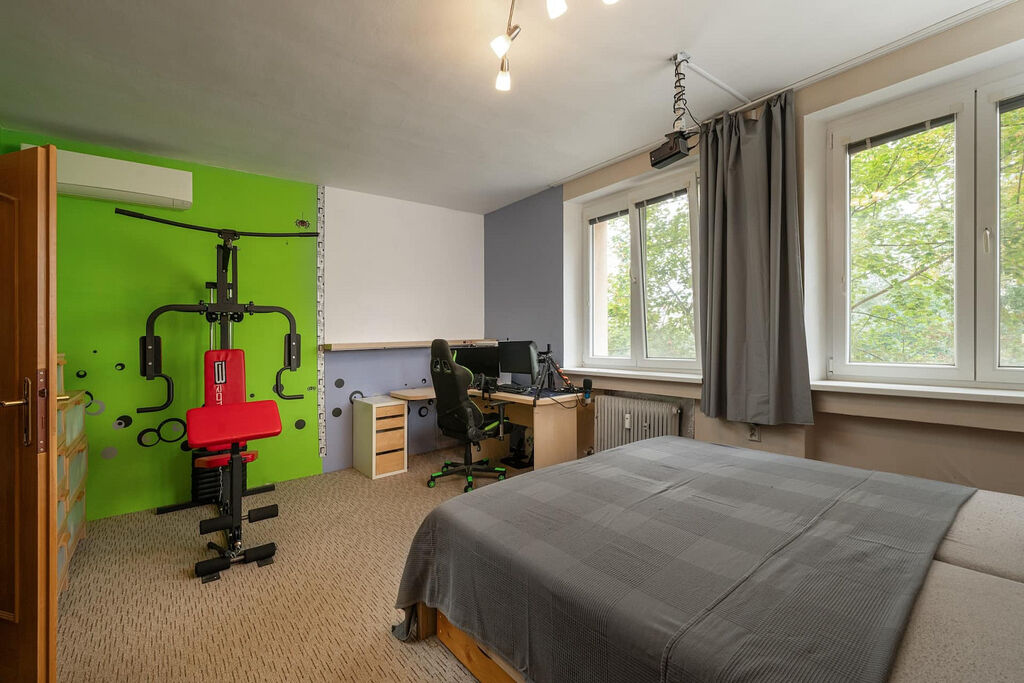 Tento prostorný byt s užitnou plochou 93 metrů čtverečních je v pěkném, udržovaném stavu a nabízí vše, co pro pohodlný rodinný život potřebujete. Místnosti v bytě jsou klimatizované, dům je zateplený a proběhla zde výměna oken i stoupaček. Součástí bytu je také větší sklepní kóje a balkon. Další výhodou je využití společné kolárny, sušárny a prostorné půdy v domě.
