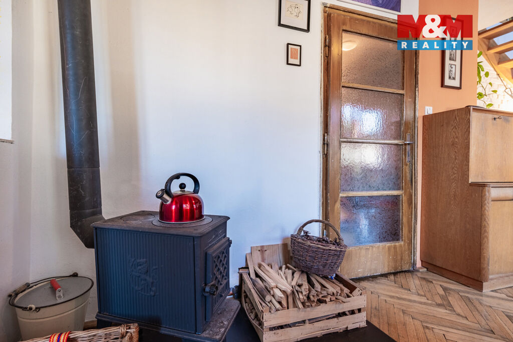Vytápění zajišťuje společná plynová kotelna – ústřední topení; pro atmosféru a přitopení poslouží zmíněná kamna. K bytu náleží velká sklepní kóje. Parkování pohodlně přímo před domem – místa je dost i pro více aut.