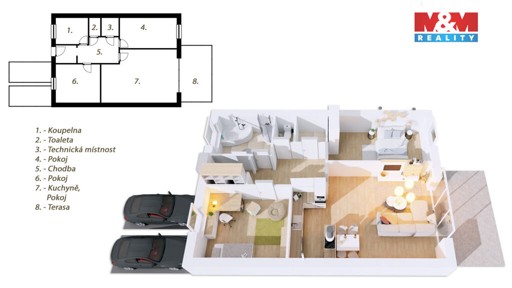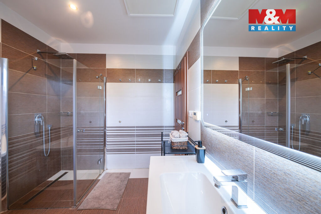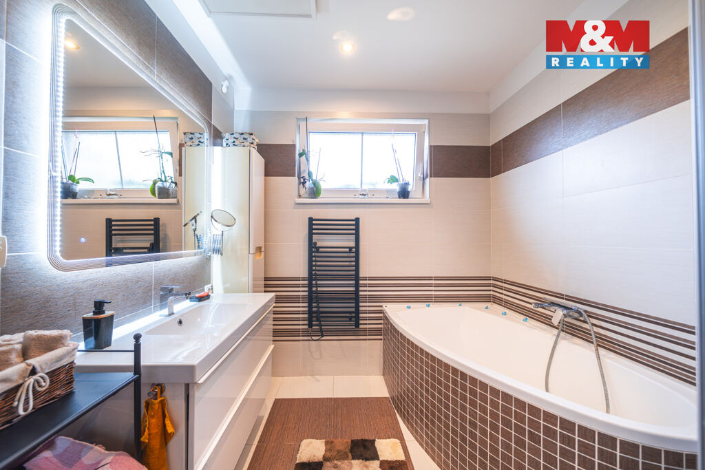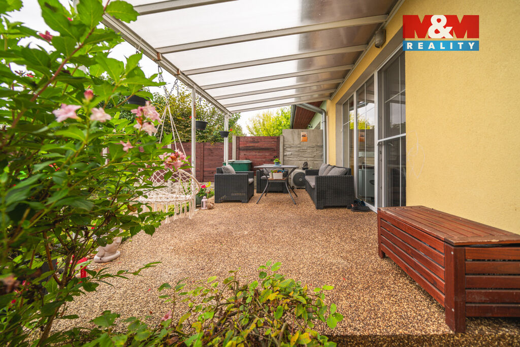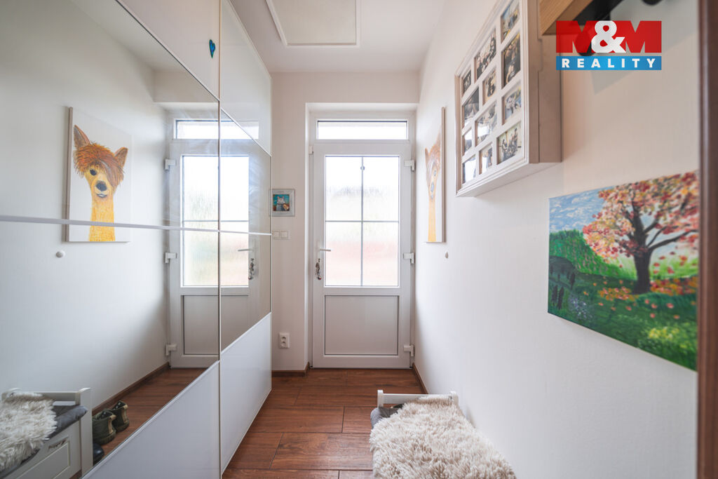 Nabízíme k prodeji novostavbu řadového rodinného domu o dispozici 3+kk, s užitnou plochou 91 m², nacházející se na slunném pozemku o celkové výměře 266 m² v klidné části obce Postřižín, okres Praha-východ. Dům je vybudován z kvalitní cihlové konstrukce a nabízí moderní a komfortní bydlení. Hlavním prostorem je prostorný obývací pokoj s kuchyňským koutem a jídelní částí, ze kterého je přístup na terasu s pergolou. Dále jsou zde dvě ložnice, koupelna s vanou a sprchovým koutem a samostatná toaleta. Technické zázemí zahrnuje technickou místnost, kde je umístěný el. bojler, půdní prostor a zahradní domek. Vytápění zajišťují elektrické panely, okna mají venkovní elektrické rolety. K dispozici klimatizace. Lokalita nabízí veškerou občanskou vybavenost a skvělou dostupnost do Prahy.