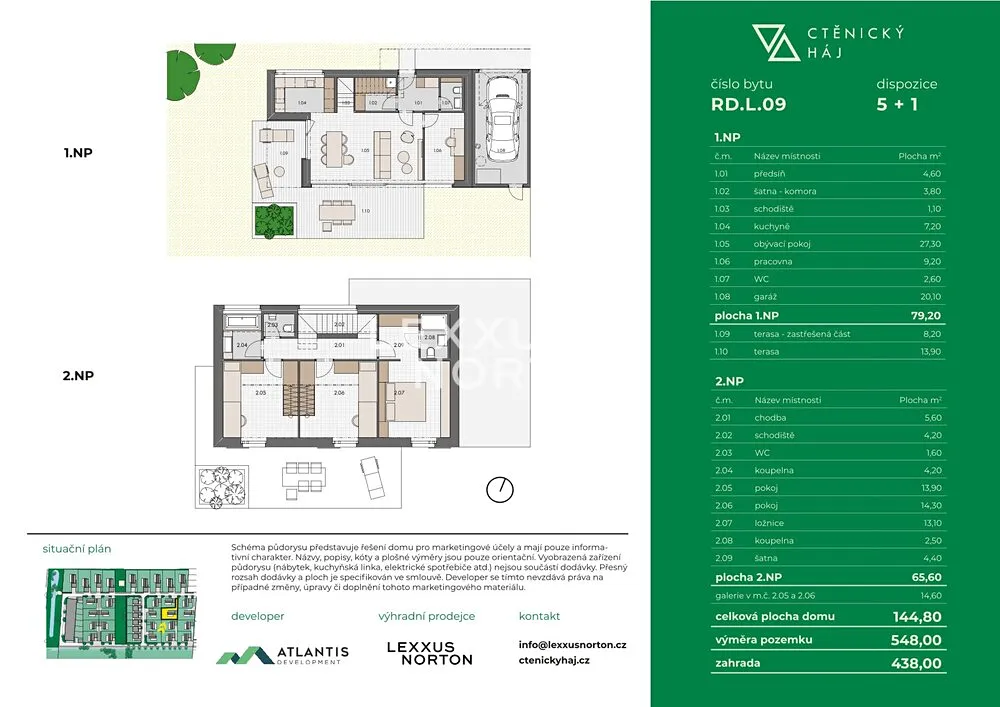 Nabízíme k prodeji rodinný dvoupodlažní dům 5+1 s celkovou plochou 144,78 m², garáží (20,1 m²), terasou (22,08 m²) a zahradou (438 m²), který je součástí projektu Ctěnický háj. Tento projekt kombinuje komfortní a energeticky úsporné bydlení s harmonií přírody a výhodnou lokalitou na severovýchodním okraji Prahy, v blízkosti Ctěnického lesoparku a nedaleko Vinoře.