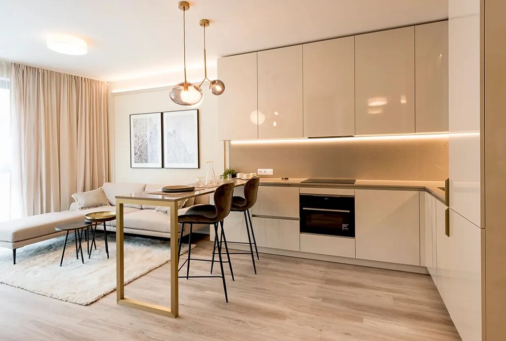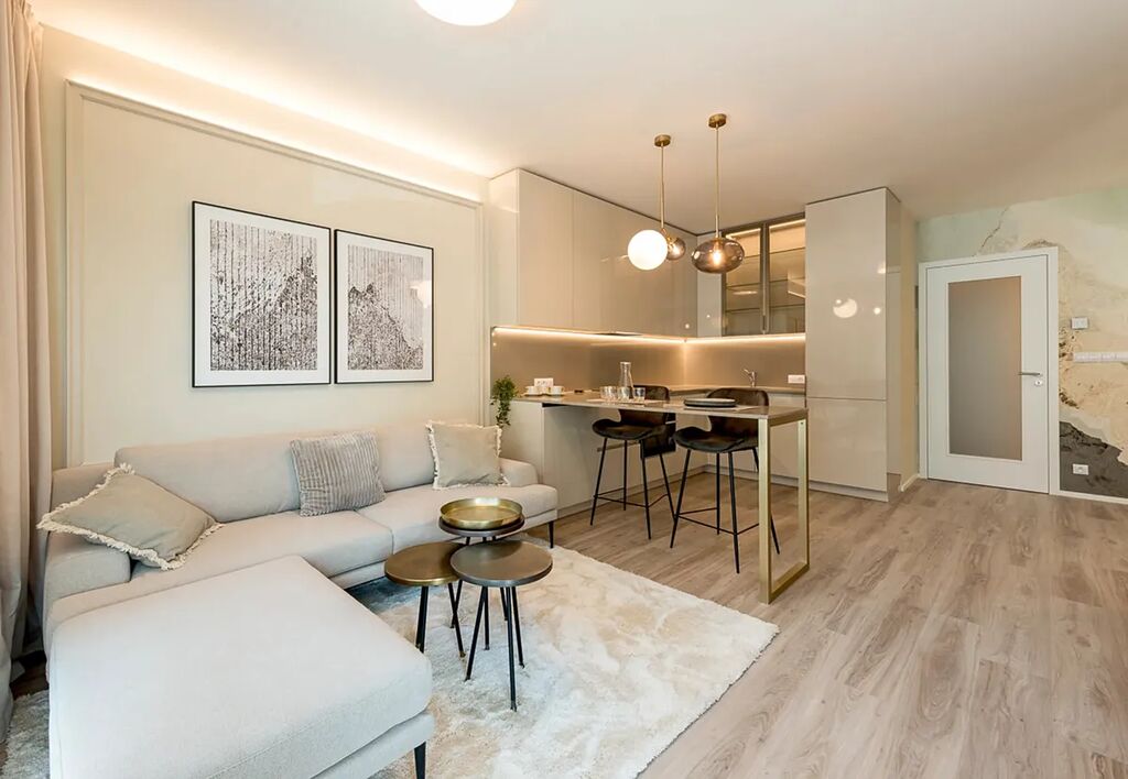 Celý dům je postaven v pasivním standardu (energetická třída A+), což znamená výrazně nižší náklady na provoz. K bytu náleží garážové stání a prodává se plně vybavený – kuchyňská linka, vestavěný nábytek i další zařízení jsou součástí ceny. Stačí se jen nastěhovat.
