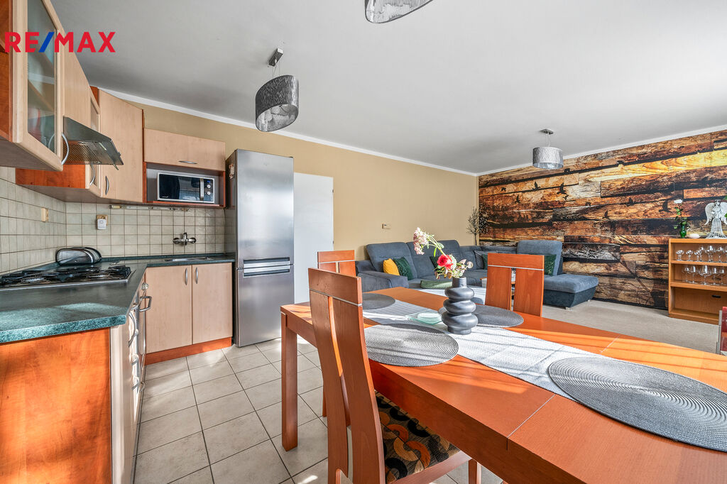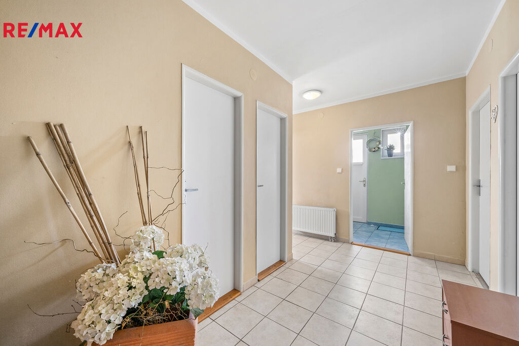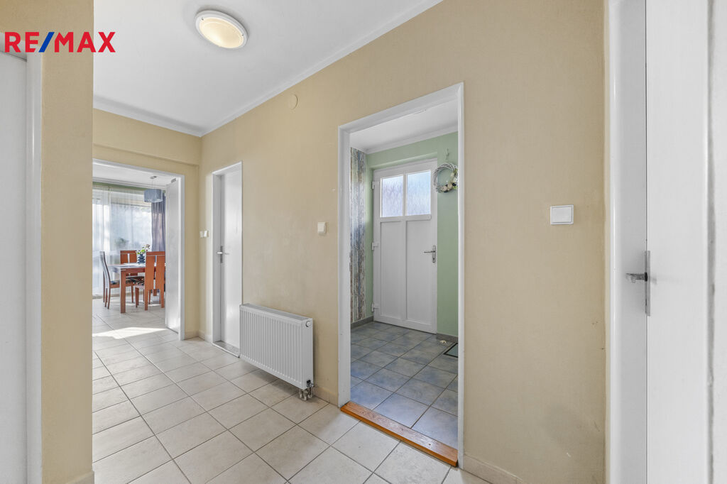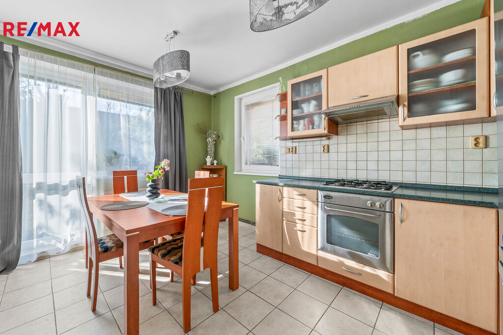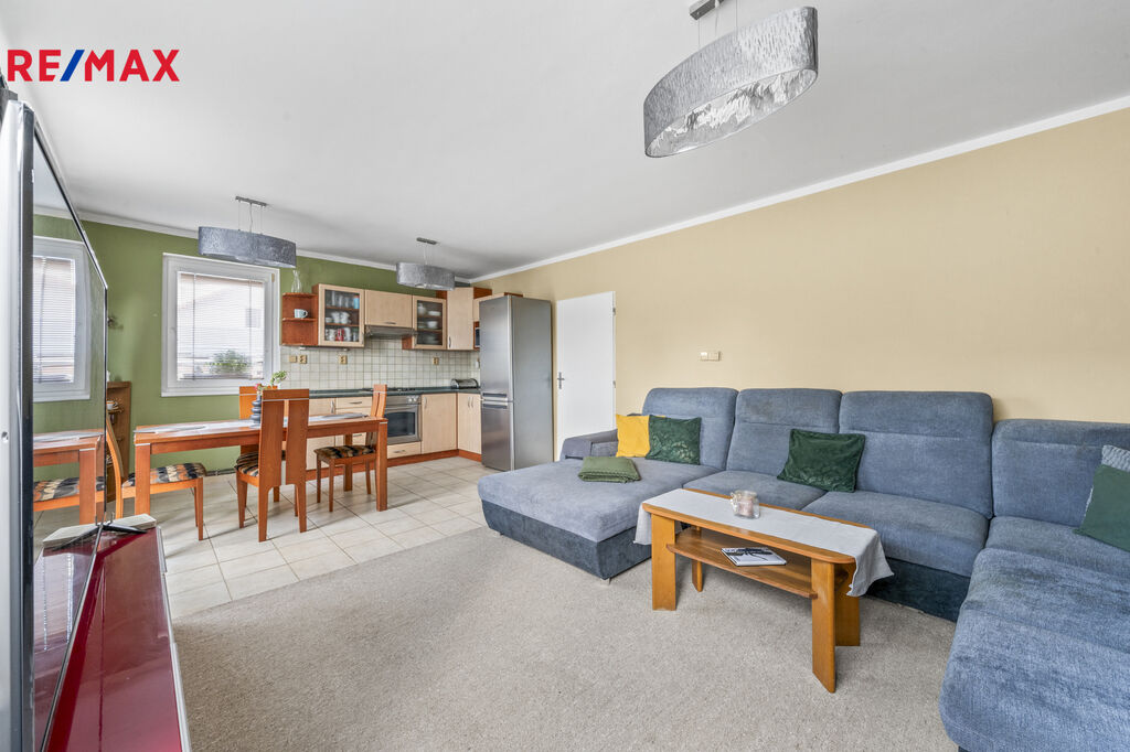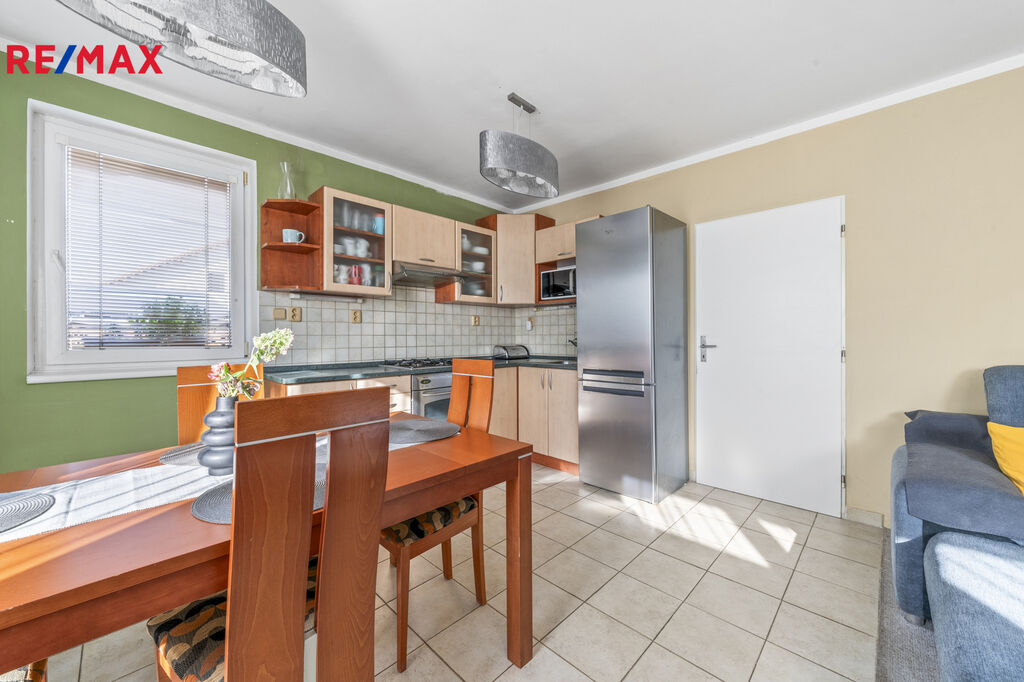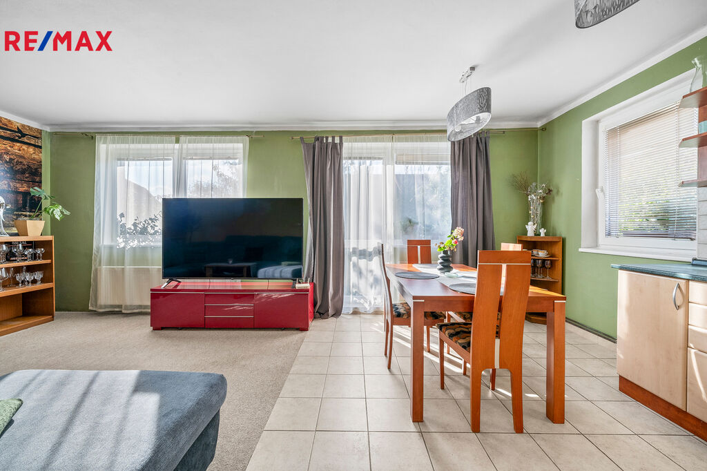 Ve výhradním zastoupení společnosti RE/MAX Future nabízíme k prodeji zděný rodinný dům (polovina dvojdomu), v přízemí se zdařilou dispozicí 3+kk. Přízemí s užitnou plochou 78 m2 tvoří vstupní zádveří, chodba, obývací pokoj s kuchyňským a jídelním koutem, spíž, ložnice, pokoj, koupelna s vanou a samostatná toaleta. Volná prostorná půda nabízí možnost rozšíření obytného prostoru o další místnosti.