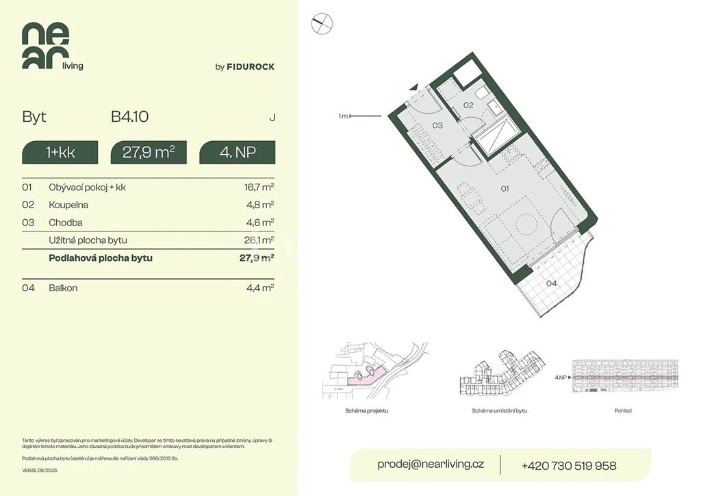 Nabízíme k prodeji byt 1+kk o podlahové ploše 27,9 m² s balkonem 4,4 m² v developerském projektu NEAR living v Praze 8, vznikajícím na pomezí Palmovky a Karlína.