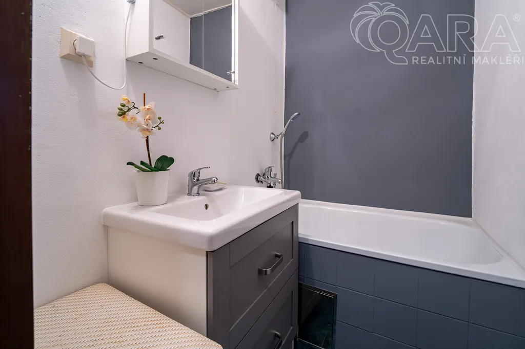 Byt, který má okna obrácená do klidného vnitrobloku, už je také plně zařízený nábytkem – stačí si jen přinést matrace a můžete bydlet. V okolí najdete řadu kaváren, restaurací a obchodů. Sportovně založení lidé ocení, že přímo v domě se nachází studio Pilates 4U a přes sklepy mohou projít do místnosti, kde se hraje ping-pong. Nájemce může užívat také uzamykatelnou sklepní kóji, kam se pohodlně vejdou např. dvě jízdní kola.